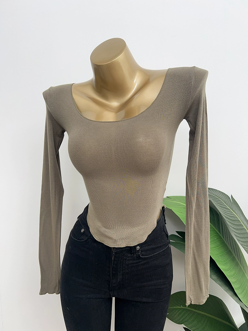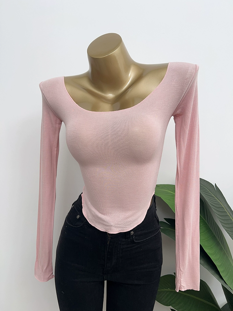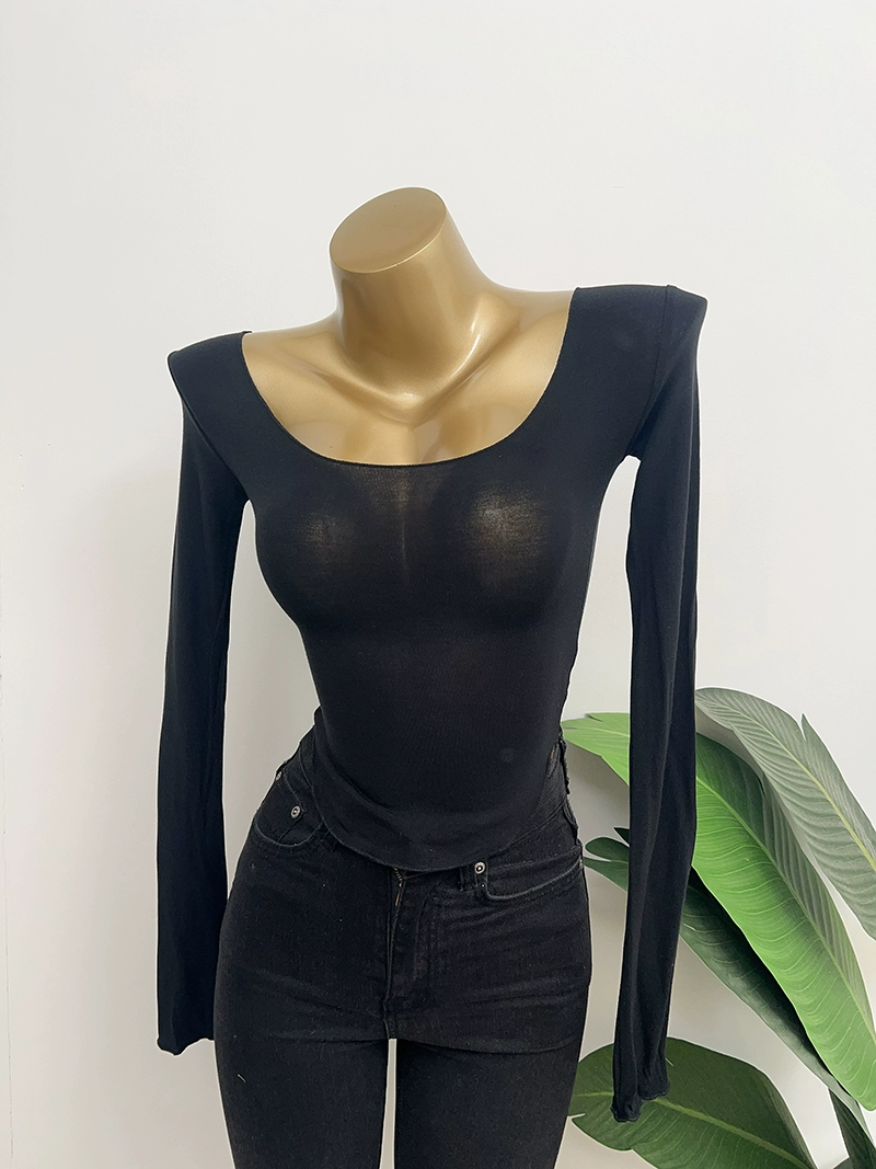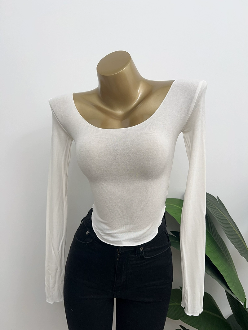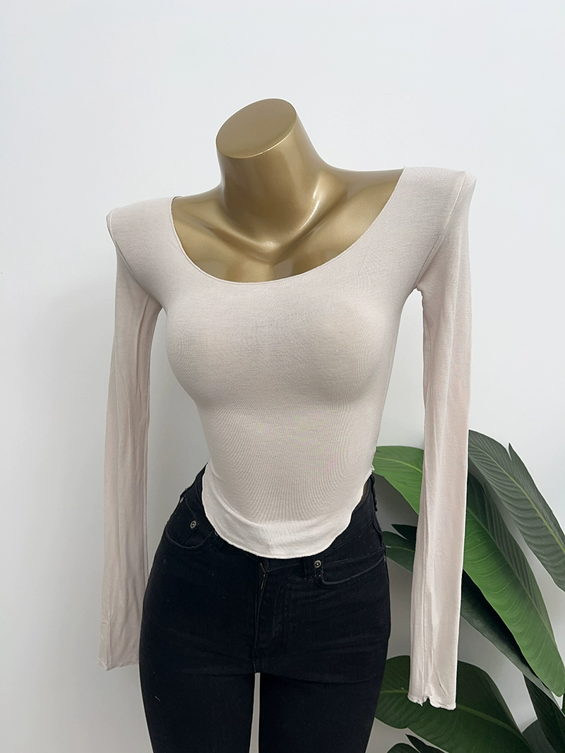 Dongdaemun Pure Desire U-neck bust-showing elastic long-sleeved T-shirt