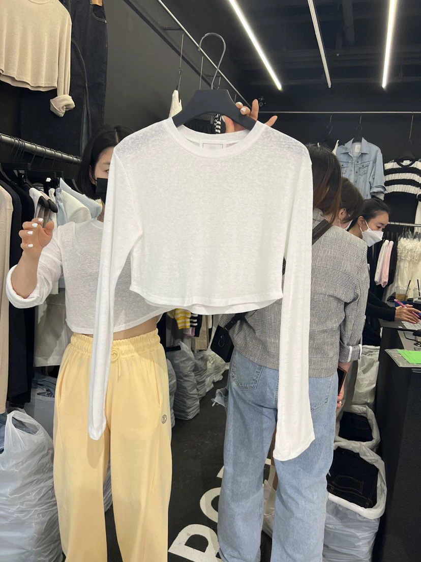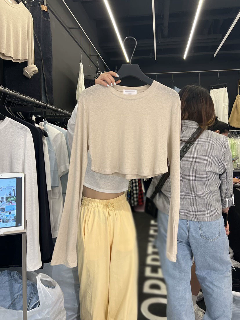 | nameOriginal | Dongdaemun round neck thin slightly see-through top long sleeve t-shirt |
