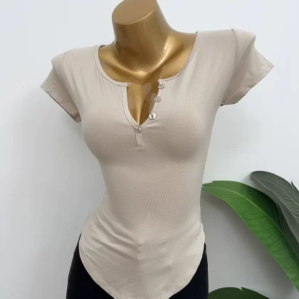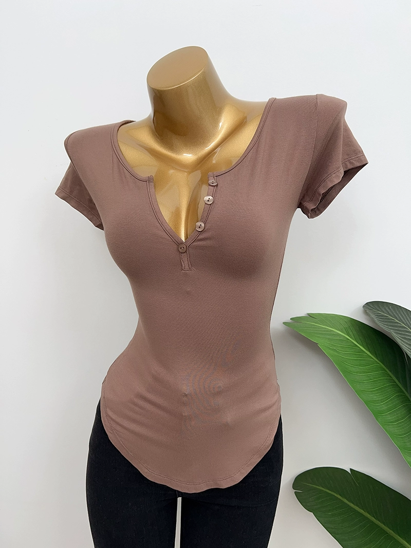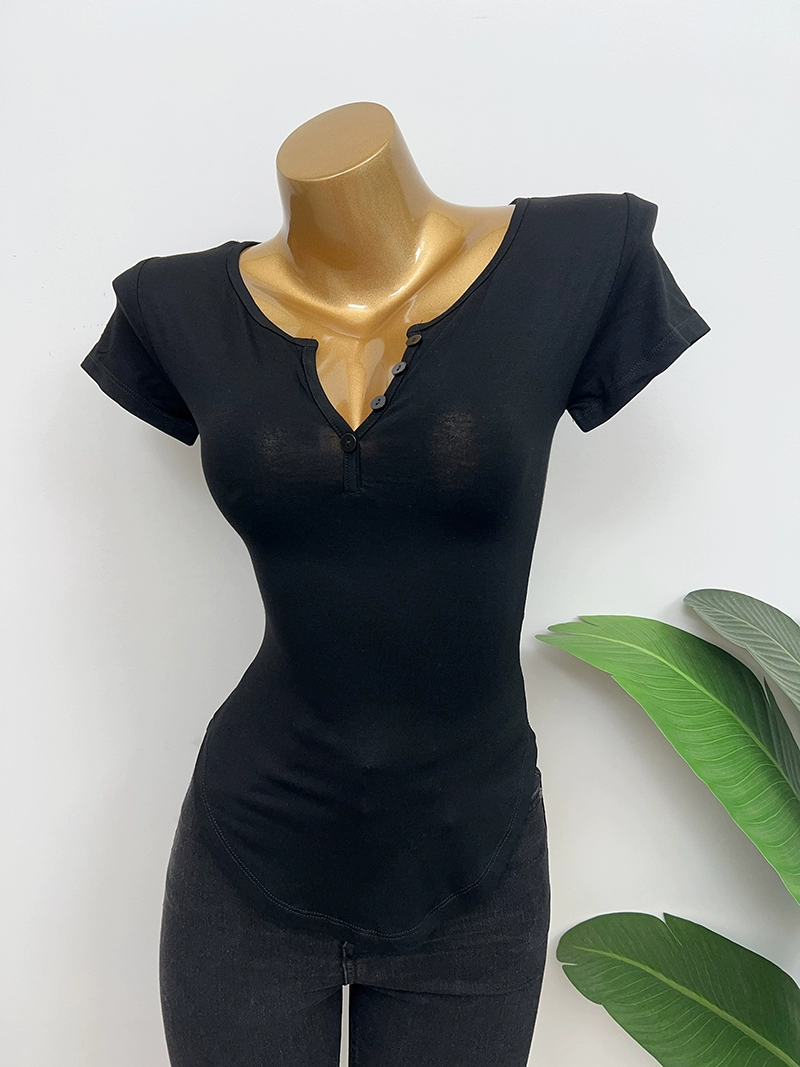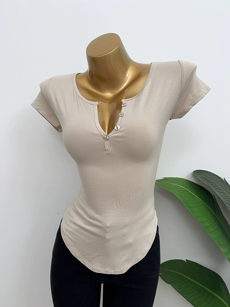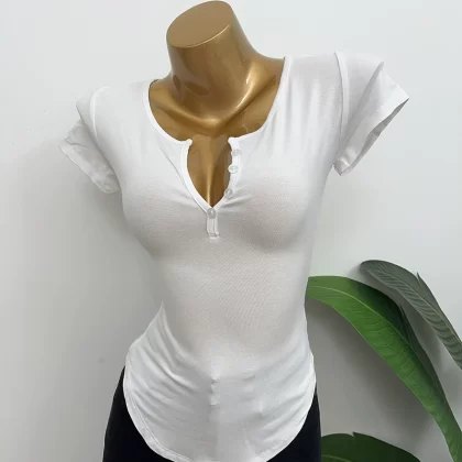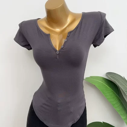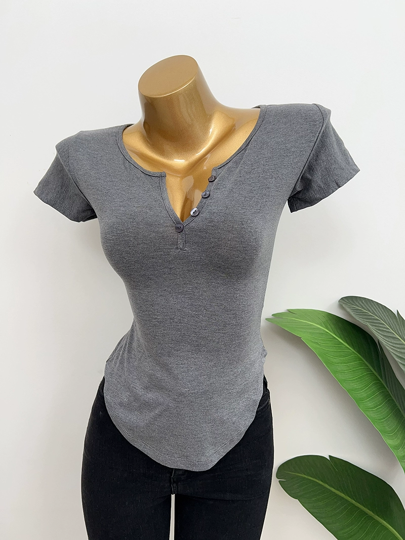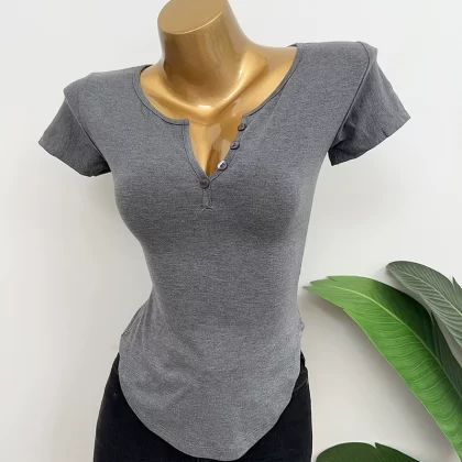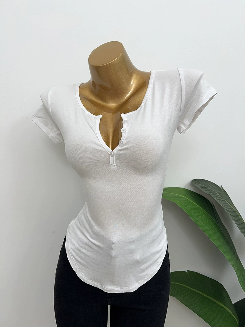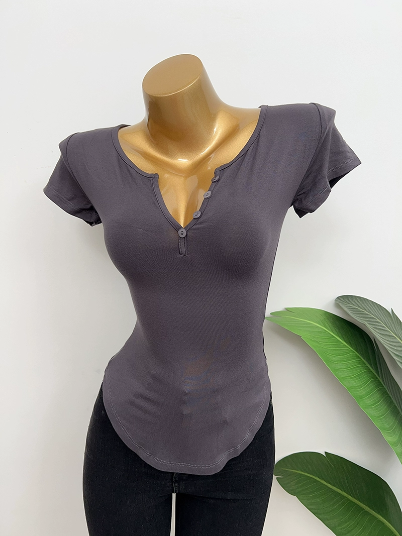 Dongdaemun slightly permeable bust-revealing tight-fitting short-sleeved T-shirt