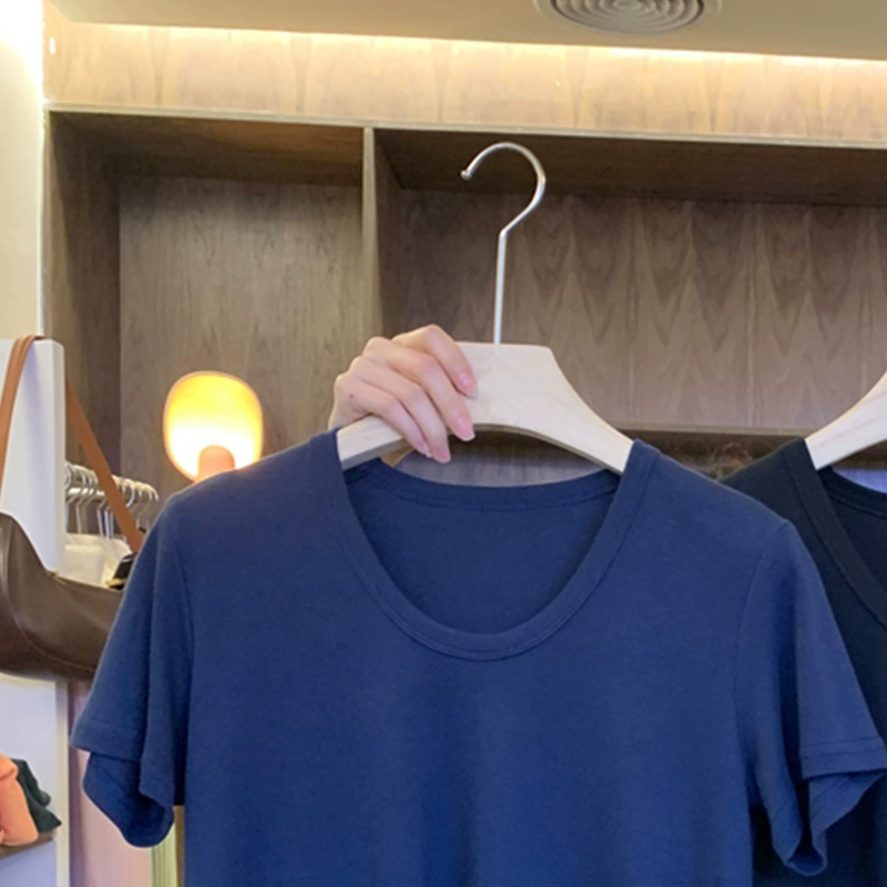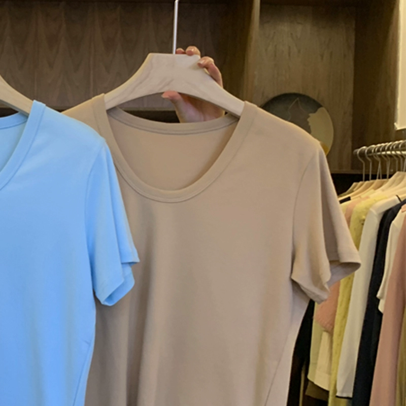 | nameOriginal | Dongdaemun solid color pure cotton U-neck T-shirt green autumn short sleeves |