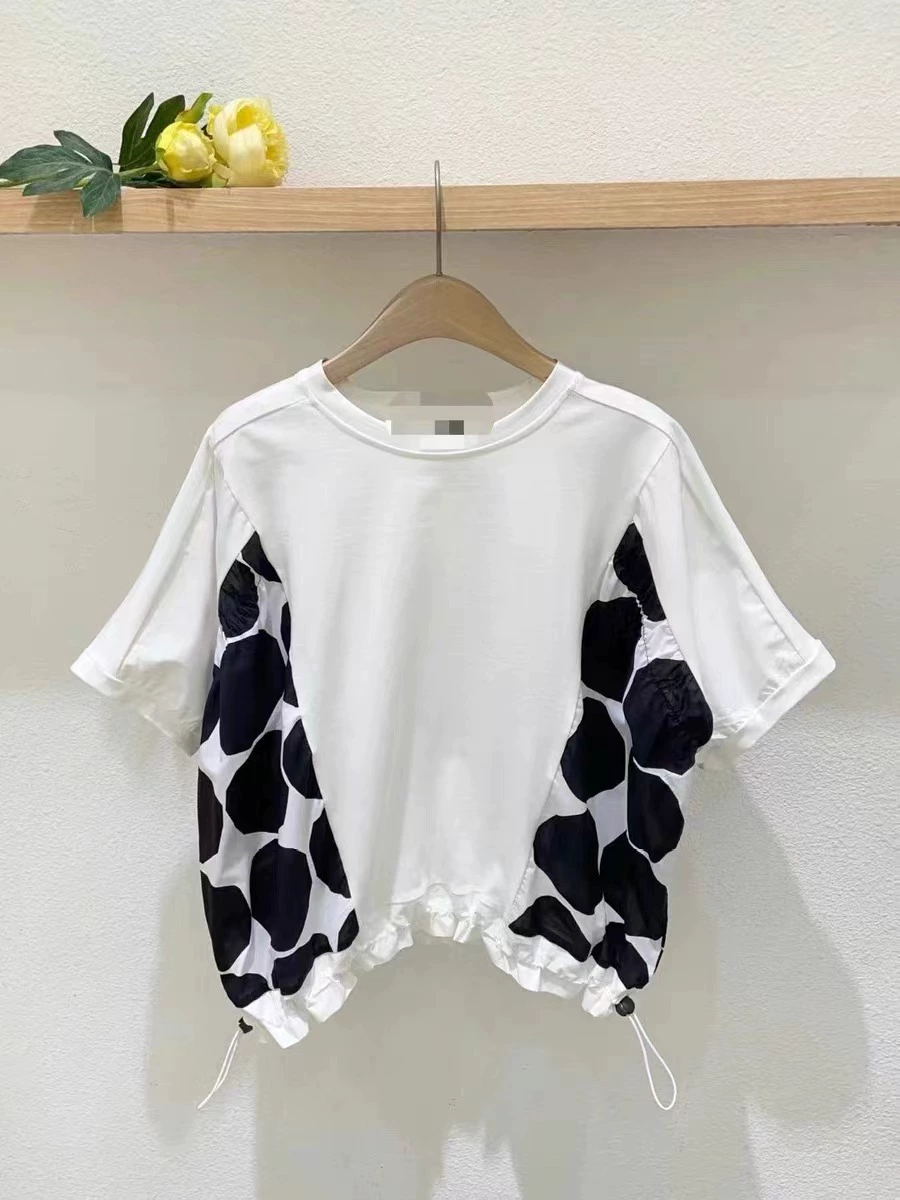 | nameOriginal | Dongdaemun, South Korea 2024 summer Korean version new product splicing round neck hem drawstring top casual versatile T-shirt for women |