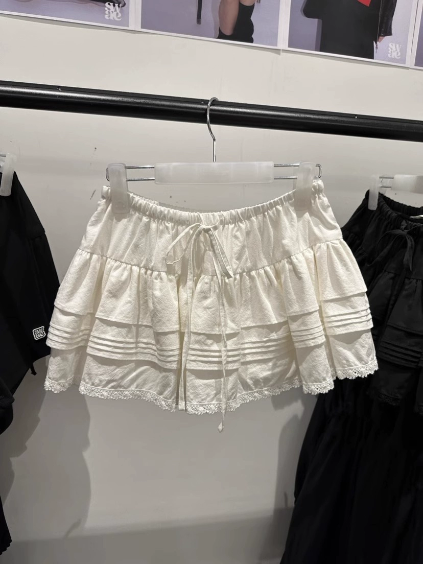 Dongdaemun Summer Elastic Lace Short Skirt Drawstring