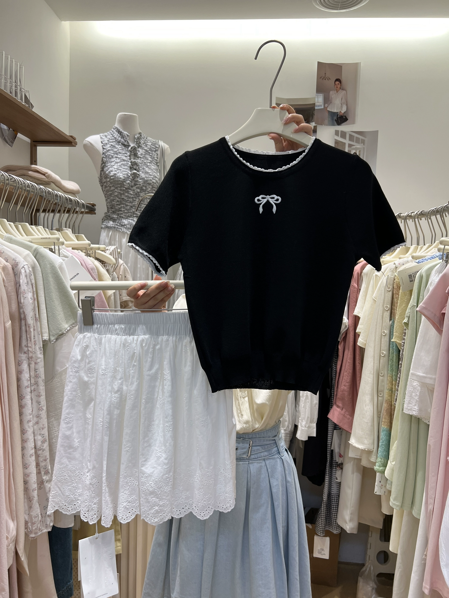 | nameOriginal | Dongdaemun trendy small fresh bow knitted short sleeves |