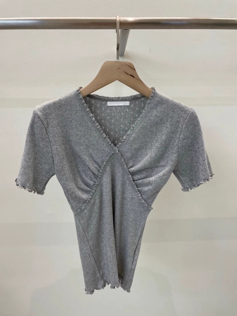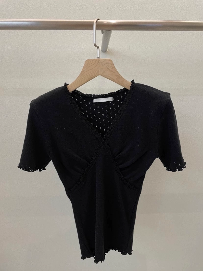 Dongdaemun V-neck spring and summer solid color elastic fungus lace