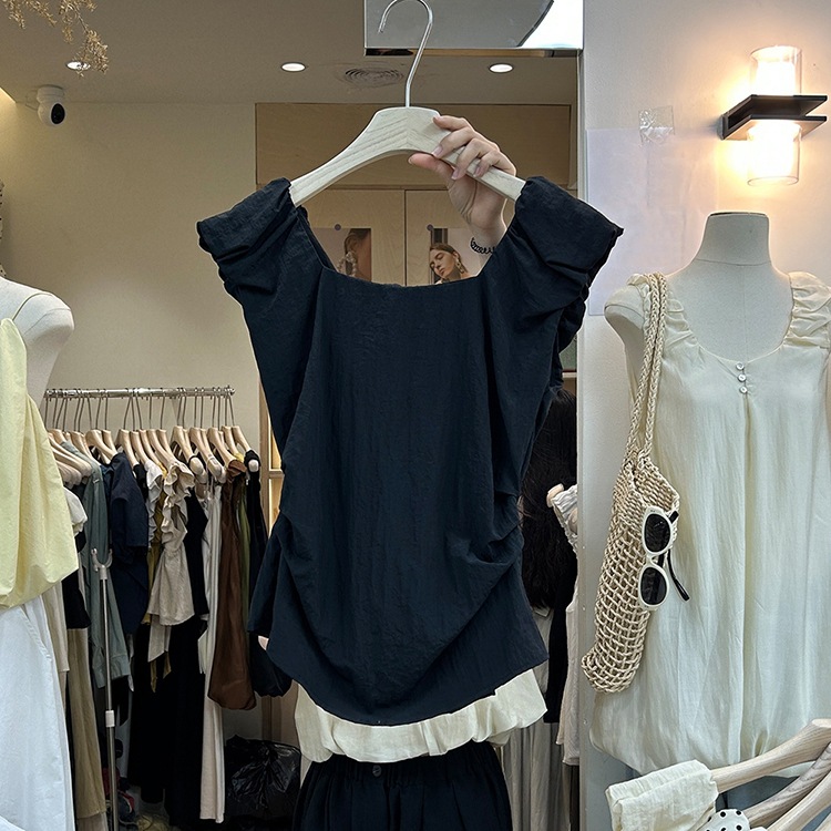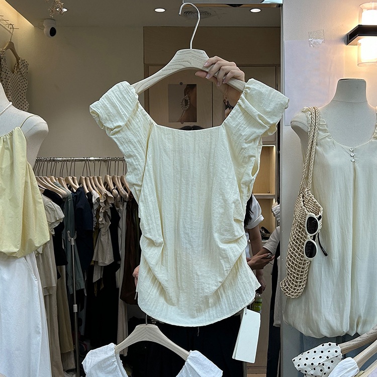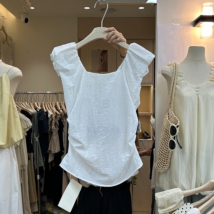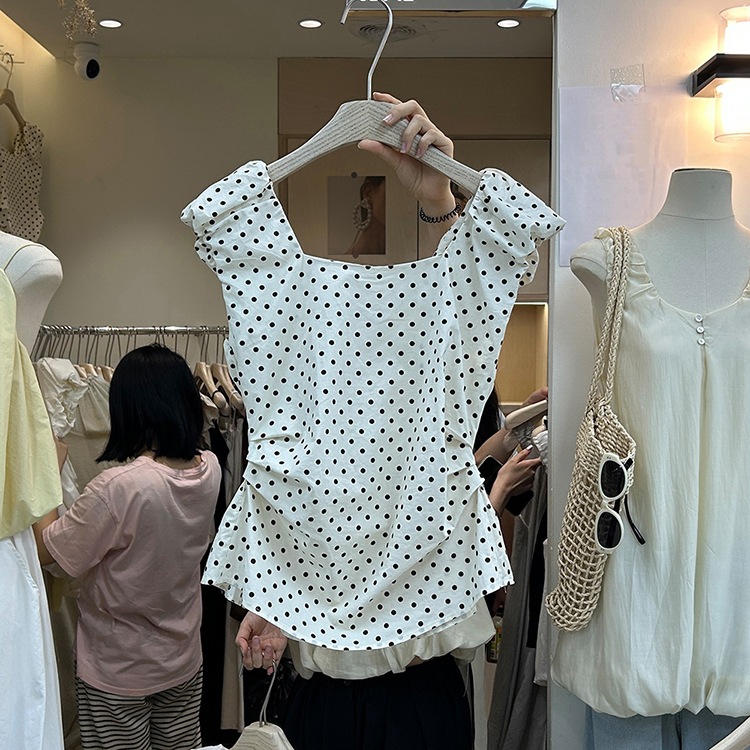 | nameOriginal | Dongdaemun Women's Summer Design Sense Stopped Waist Pleated Vest Top Women's New Korean Style Retro Polo Dot Square Collar Shirt |