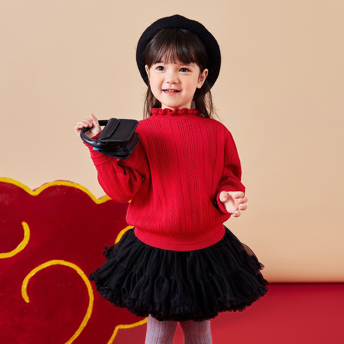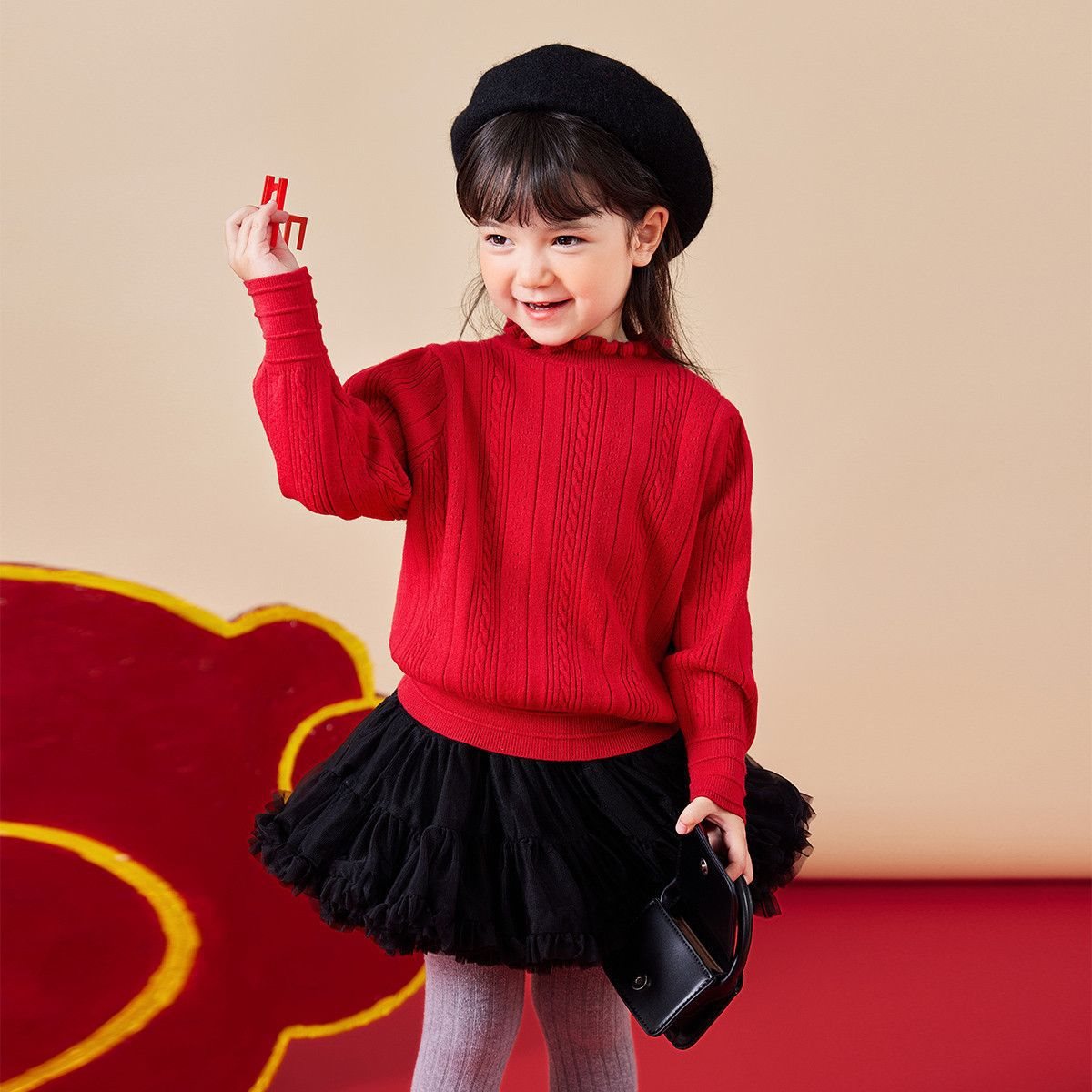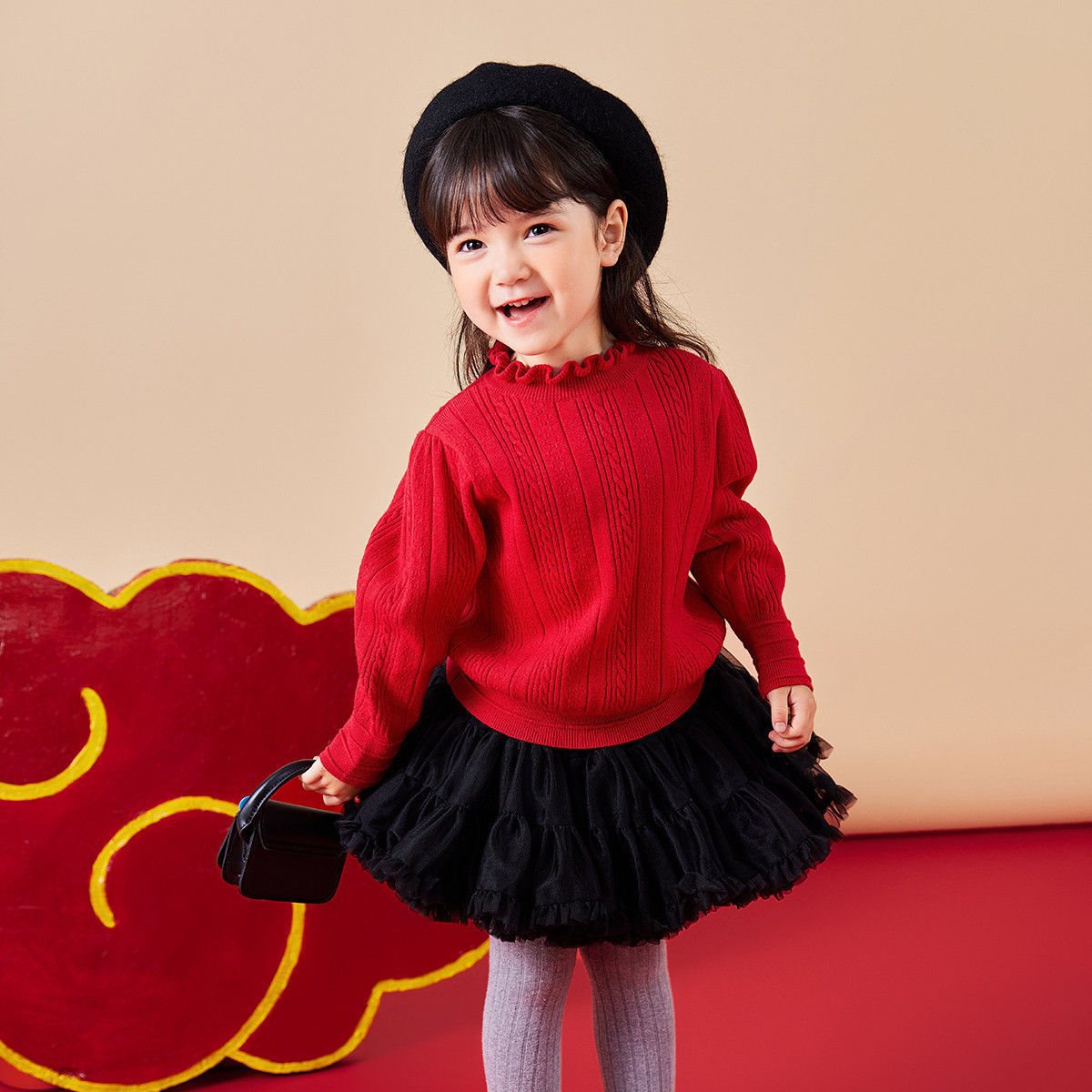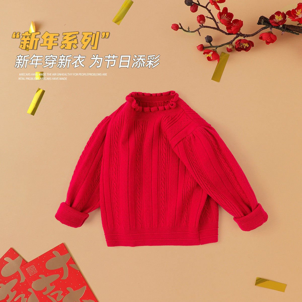 Doodle Girl's New Year's Clothes Winter Children's Red Festive Sweater Female Treasure Knitted Shirt Baby's New Year's Clothes for the Year of the Dragon