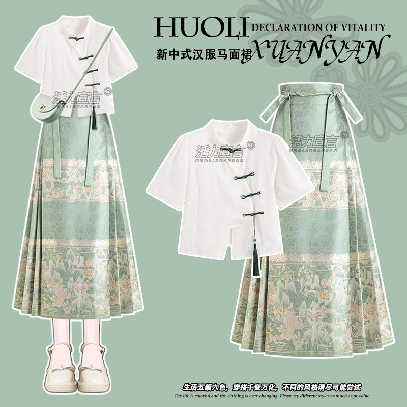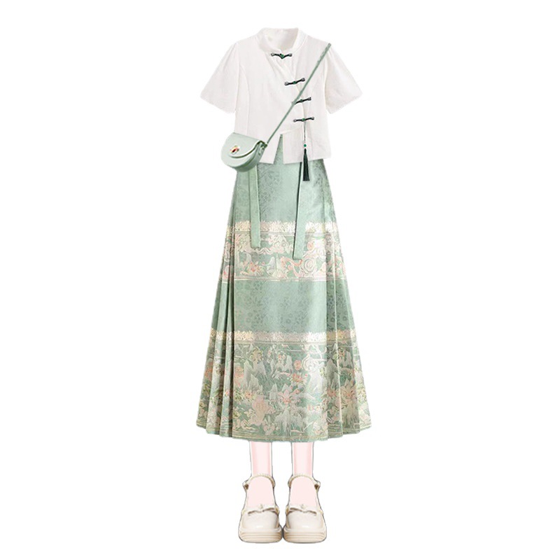| nameOriginal | Dopamine Chinese Style Hanfu Green Horse Face Skirt Women's Summer 2024 New Mint Mambo Style New Chinese Style Skirt |