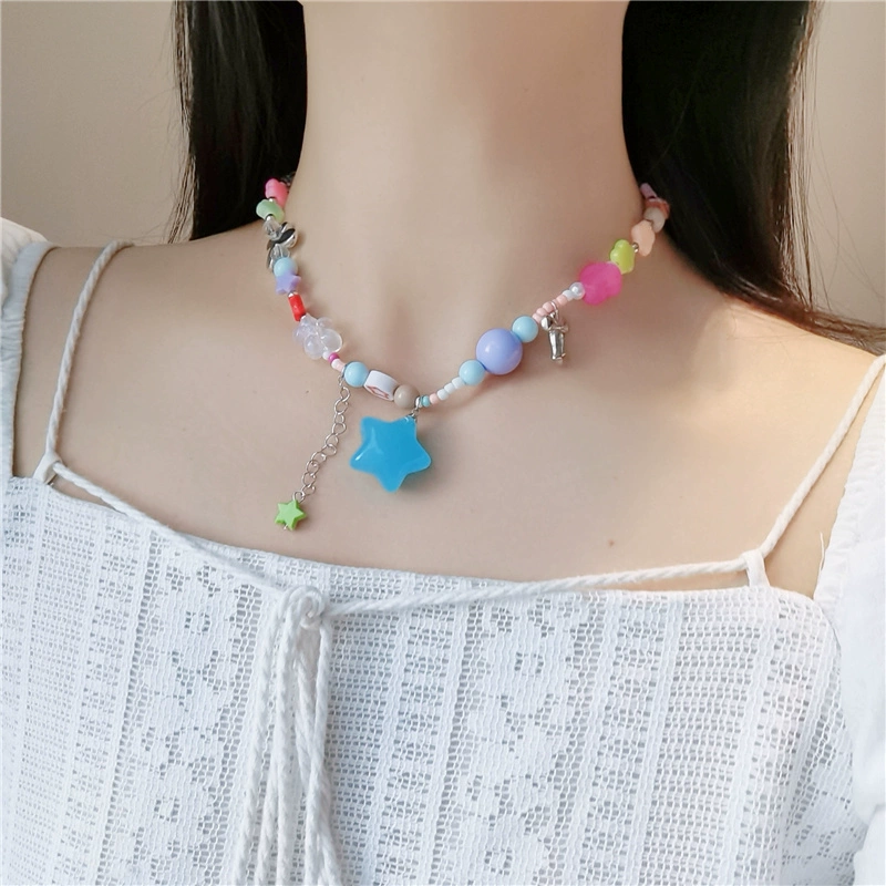 Dopamine Colorful Star Beaded Sweet Cool Hot Girl Necklace
