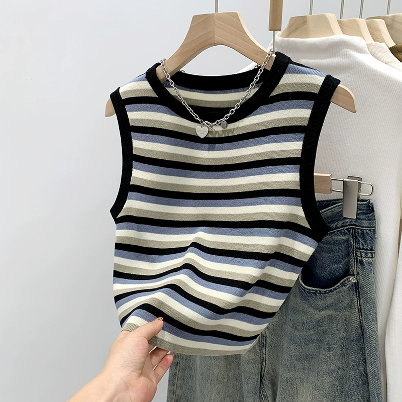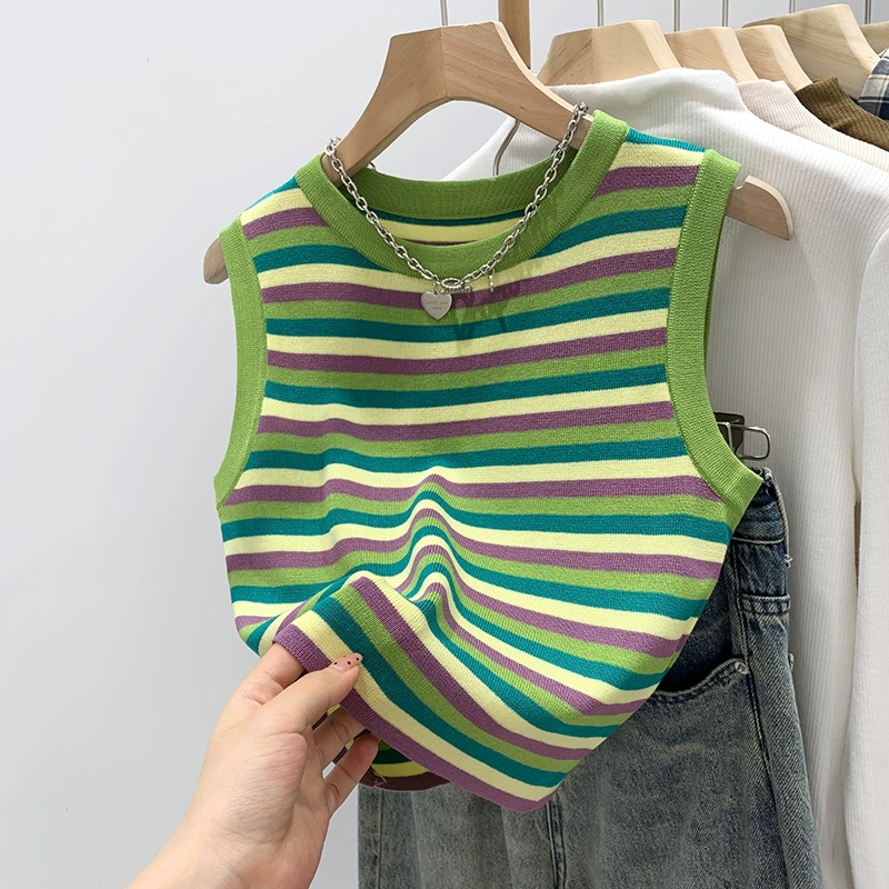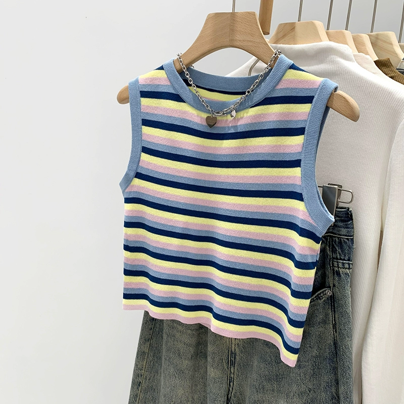 Dopamine Contrast Color Chic Striped Sleeveless Knitted Tank Top