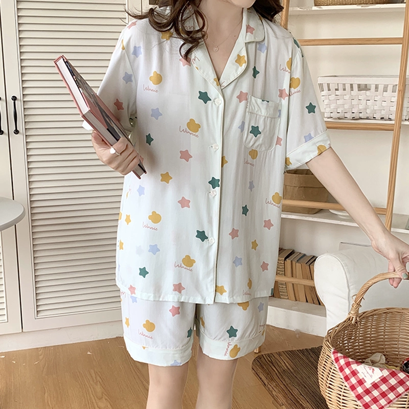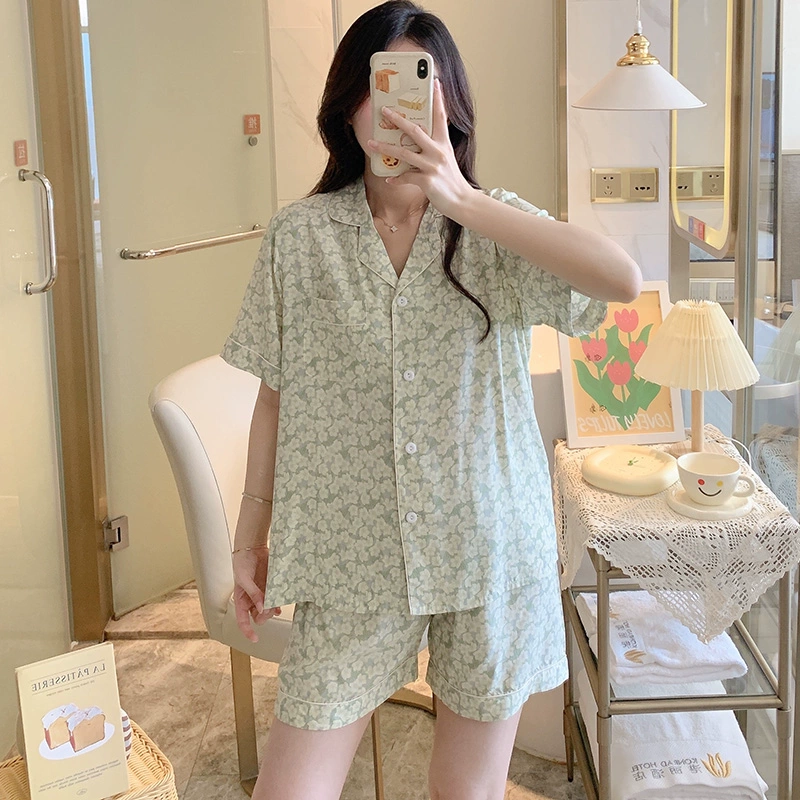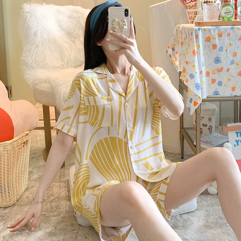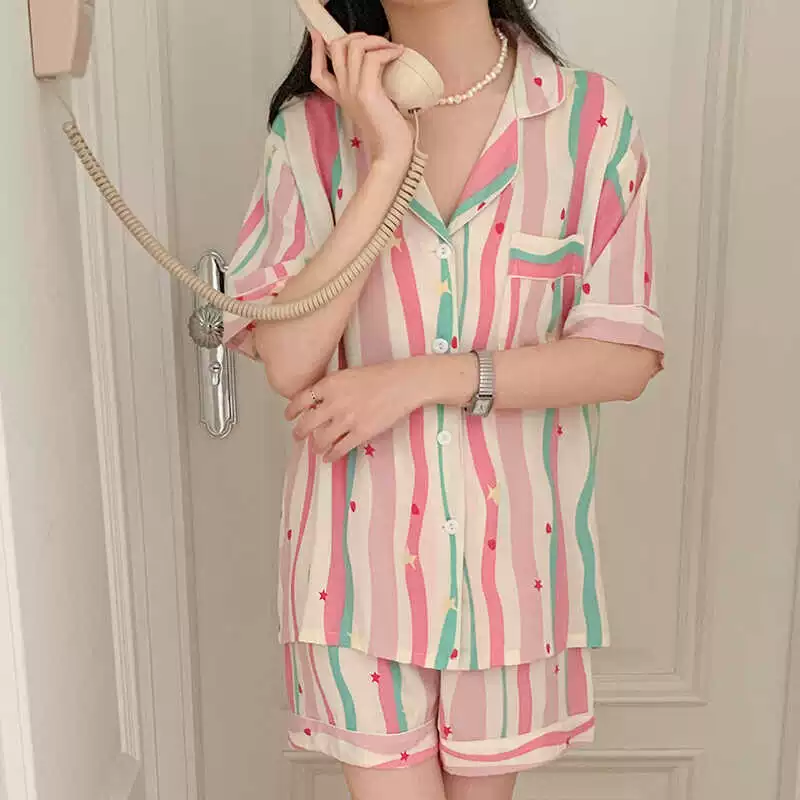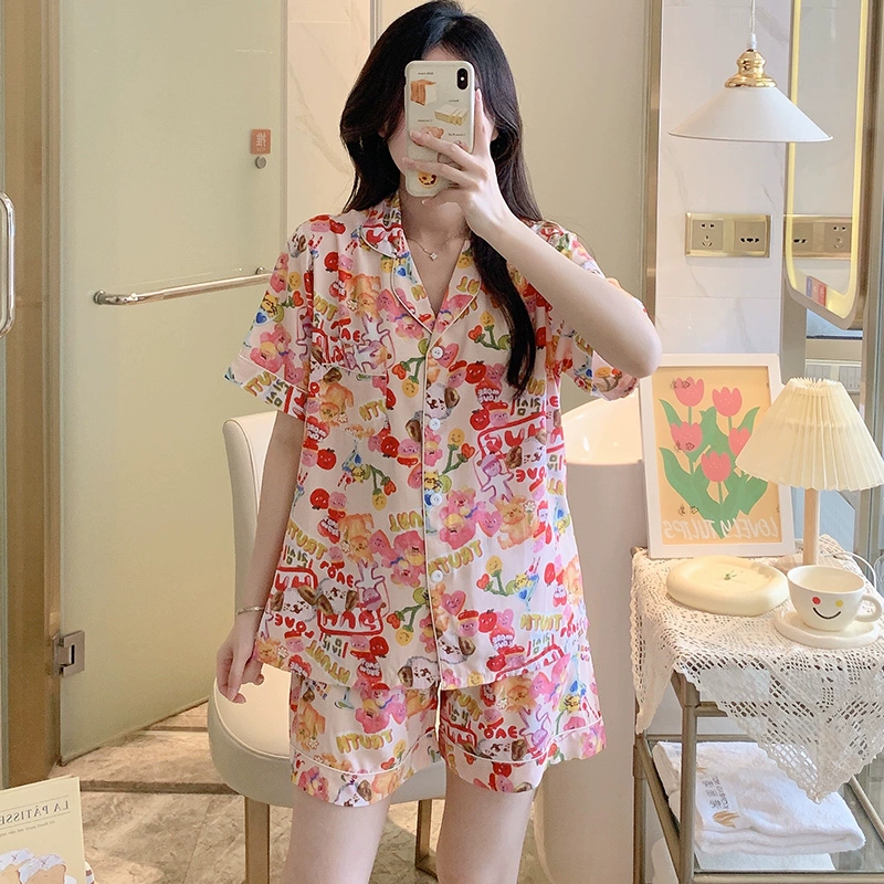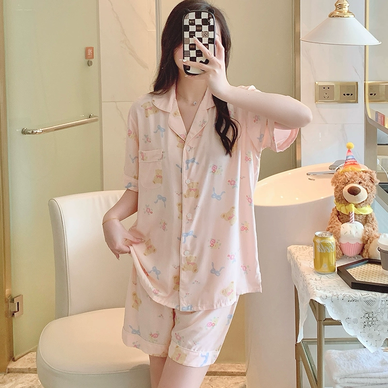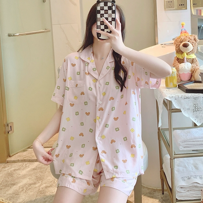 | nameOriginal | Dopamine cotton silk pajamas women's summer short-sleeved shorts suit pink large size artificial cotton cotton can be worn outside home clothes |