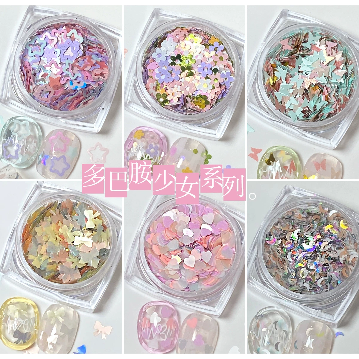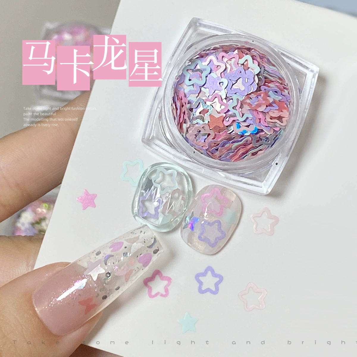 | nameOriginal | Dopamine flow hemp colorful candy hollow moon manicure |