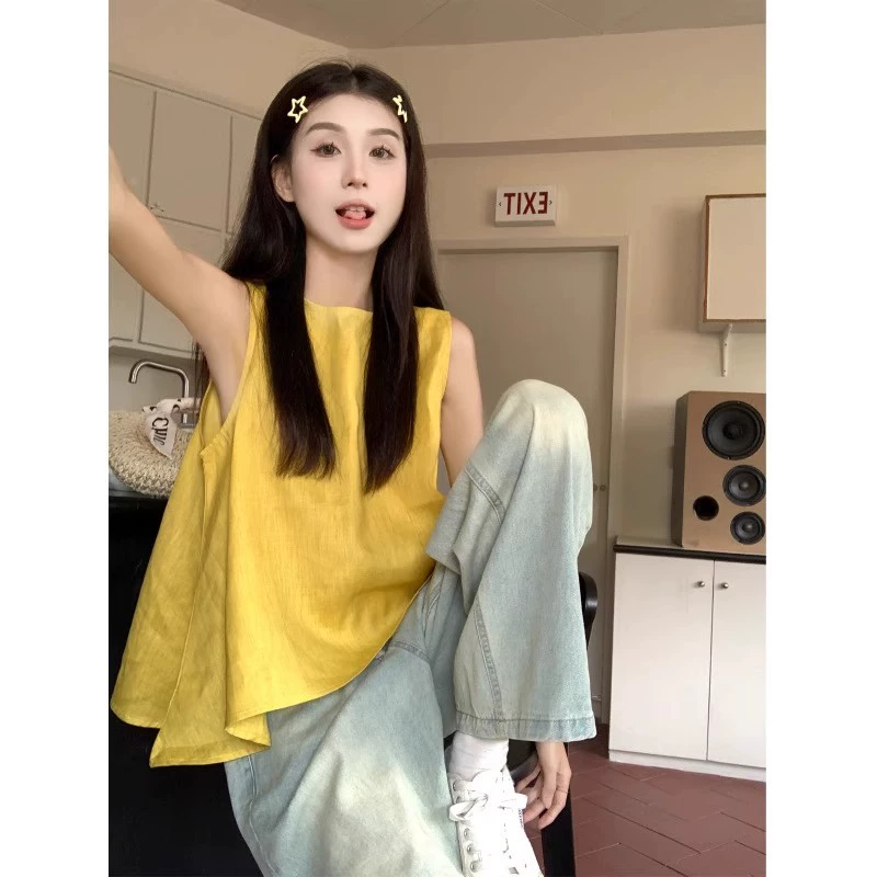 | nameOriginal | Dopamine Girl Fresh Yellow Sleeveless Shirt |