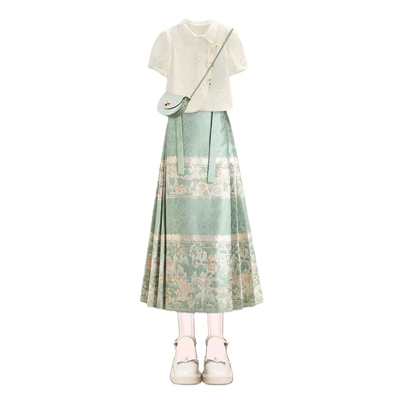 | nameOriginal | Dopamine Hanfu Green Horse-faced Skirt suit Women's Summer 2024 New Chinese Element National Style New Chinese Style Skirt |