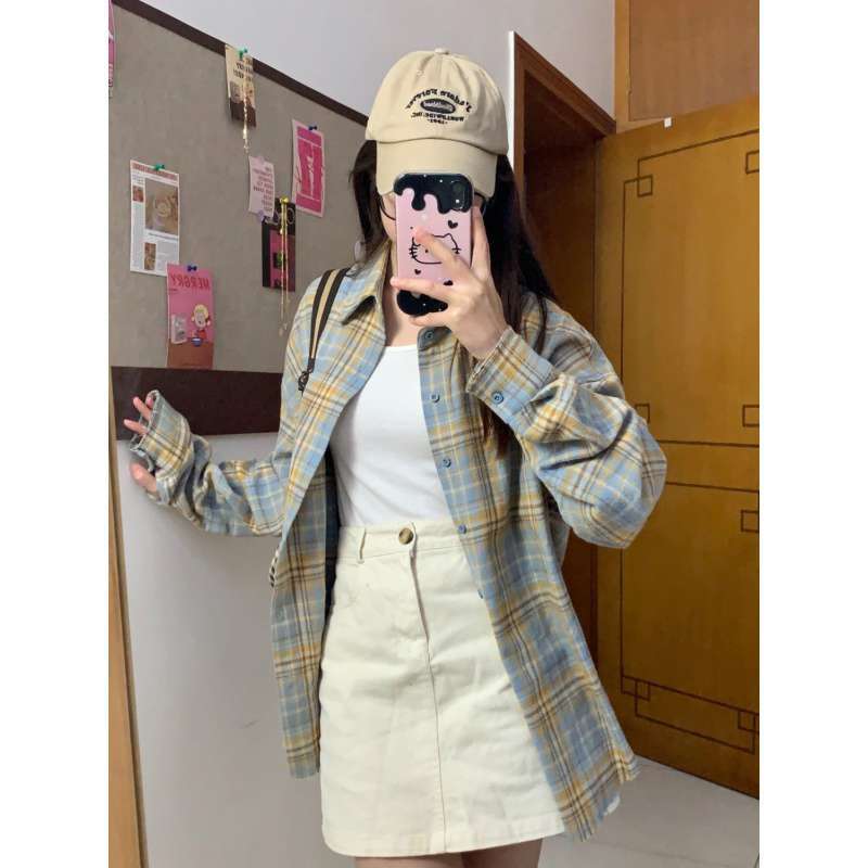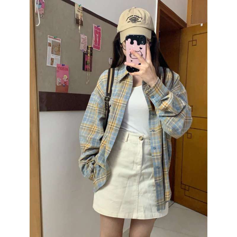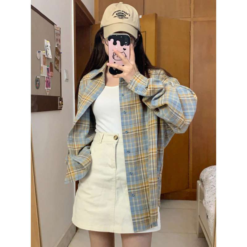 | nameOriginal | Dopamine Light Luxury High-grade Pure Cotton Plaid Shirt Women's Inner Layered Loose Casual Slim-fit Long-sleeved Shirt Outer Wear |
