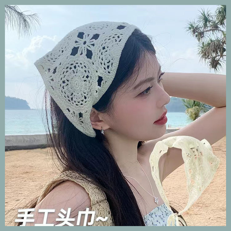 | nameOriginal | Dopamine Mori Knitted Triangle Scarf Headwear French Headwear Women's Summer Pastoral Style Lace Crochet Flower Wholesale with Seaside |