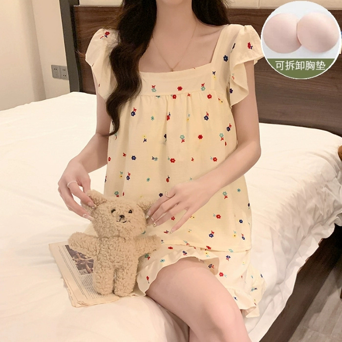 Dopamine pajamas women’s summer sleeveless sweet cotton yarn can be worn outside sexy and discreet with chest pad home clothes set