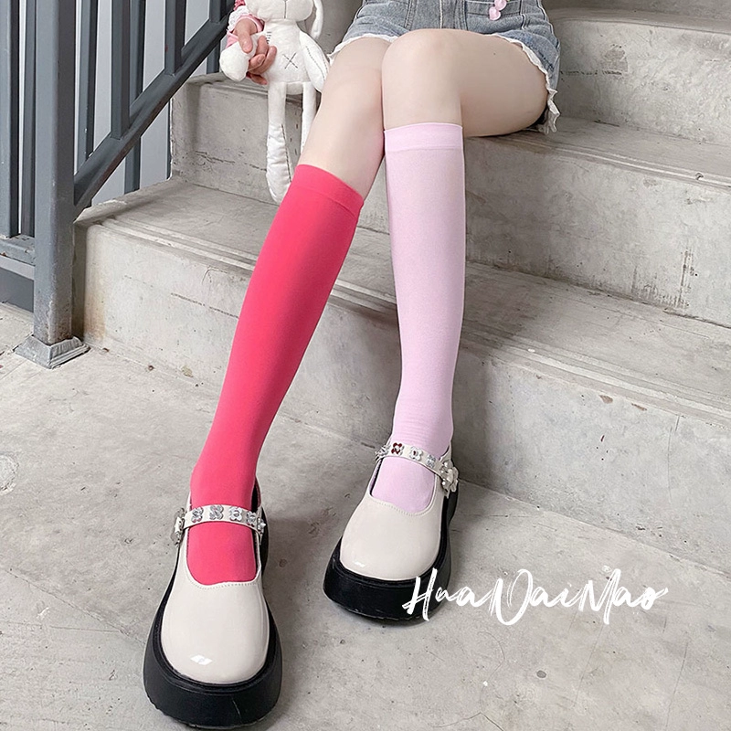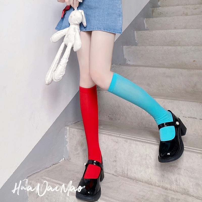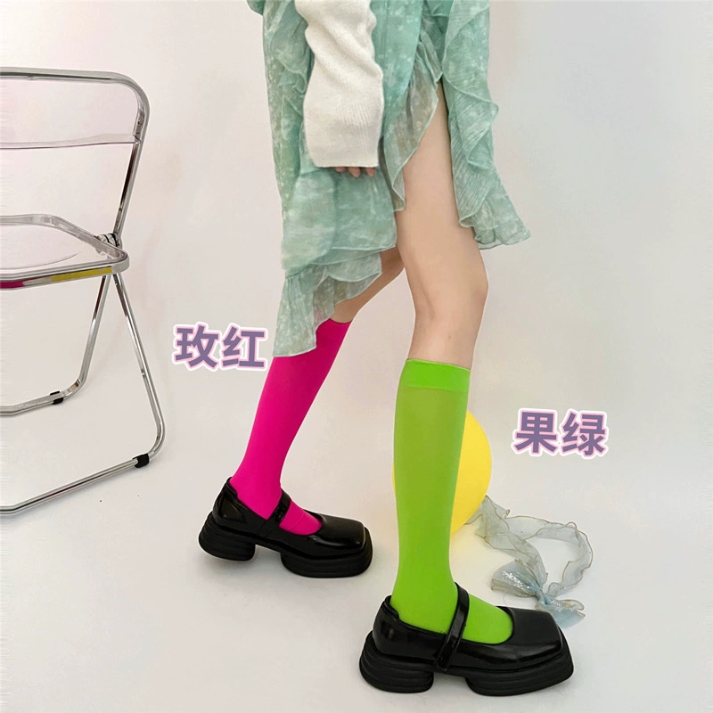 Dopamine socks colorful calf socks summer thin girl internet celebrity candy color mid-calf socks jk solid color stockings