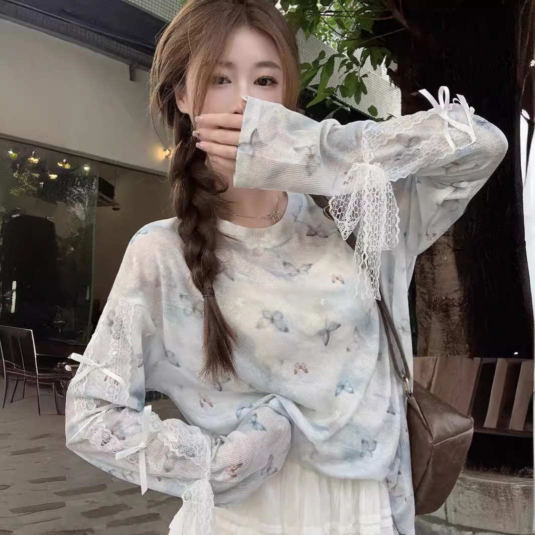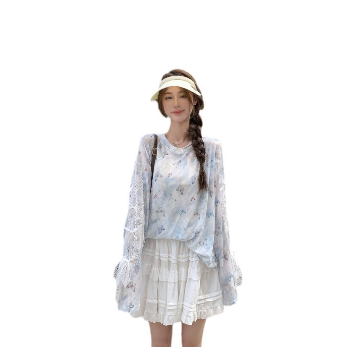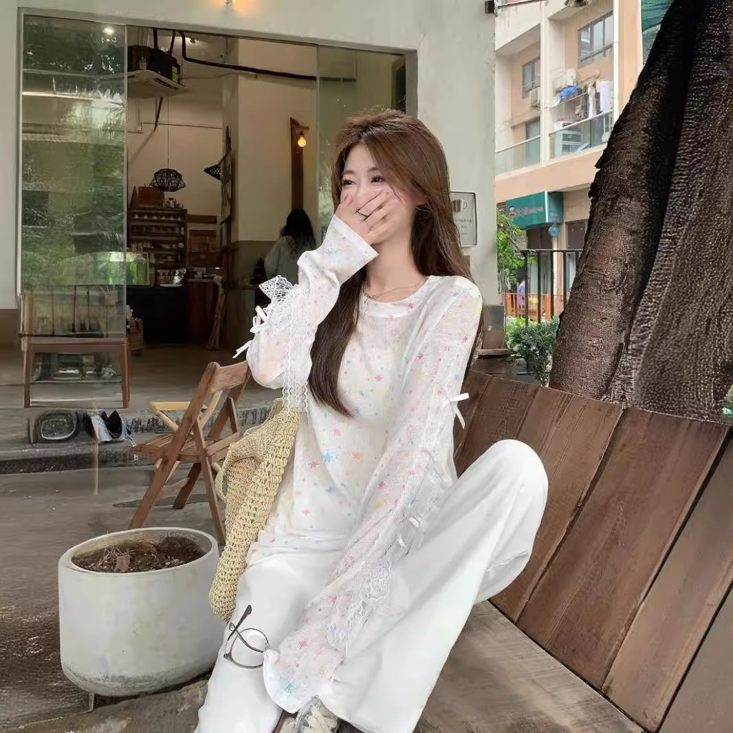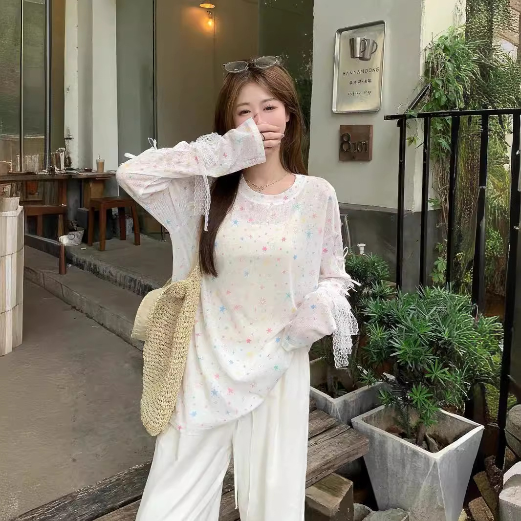 | nameOriginal | Dopamine Star Printed Blouse T-shirt Women's 2024 Summer New Niche Casual Loose Thin Sunscreen Top |