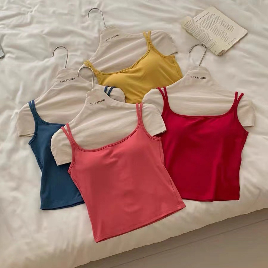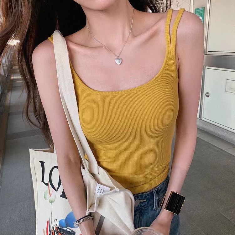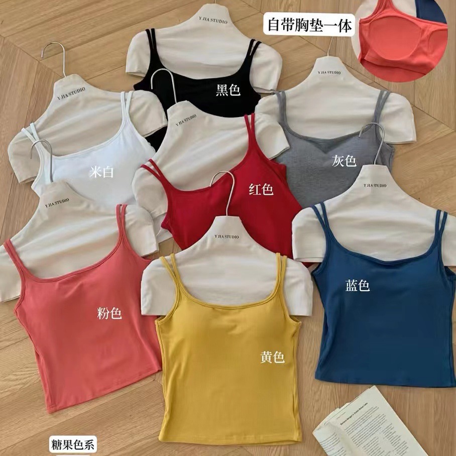 | nameOriginal | Dopamine Summer Short Vest Sling Women's Comfortable Breathable Slim-fit All-match Solid Color Top Shoulder Strap with Self-contained Double Shoulders |