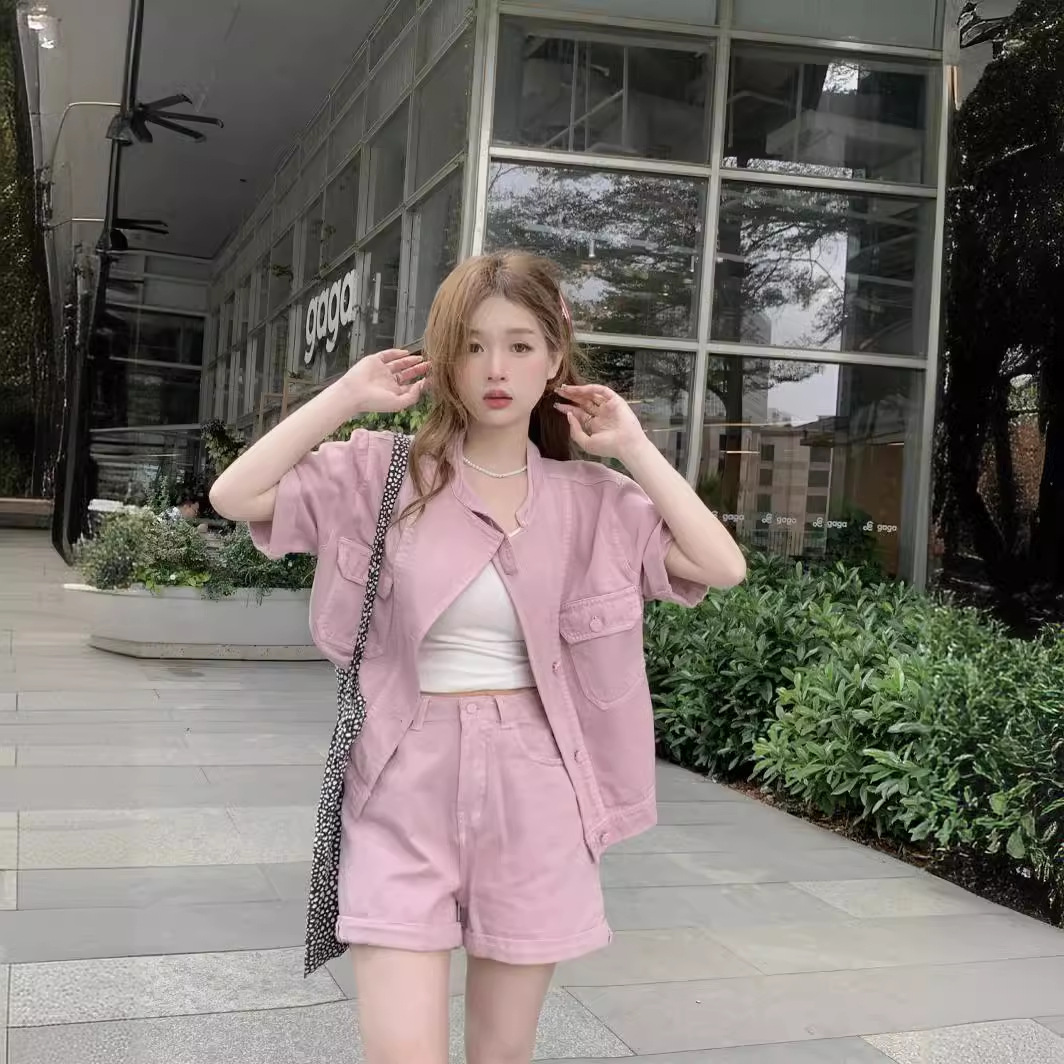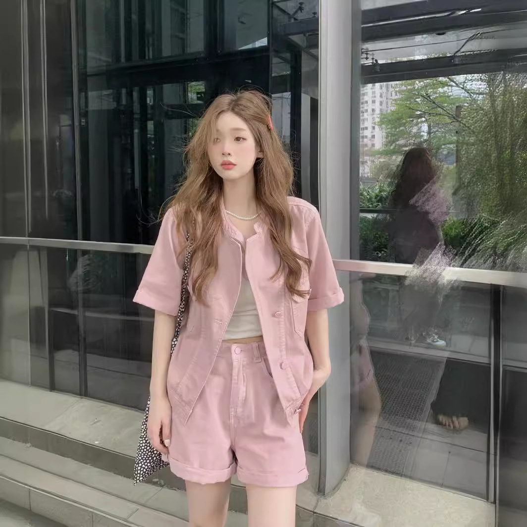 | nameOriginal | Dopamine to wear a set of pure, sweet, playful and lively age-reducing pink denim suit |