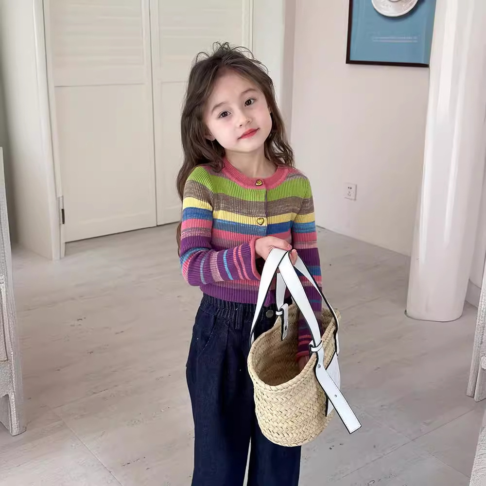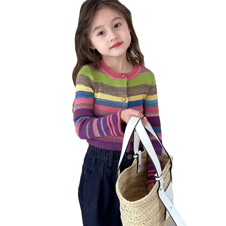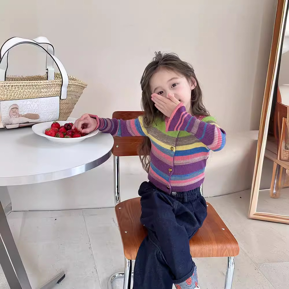 | nameOriginal | Dopamine Wear Spring and Autumn Girls' Korean Style Horn Sleeve Slim-fit Knitted T-shirt Children's Striped Sweater Baby Coat |