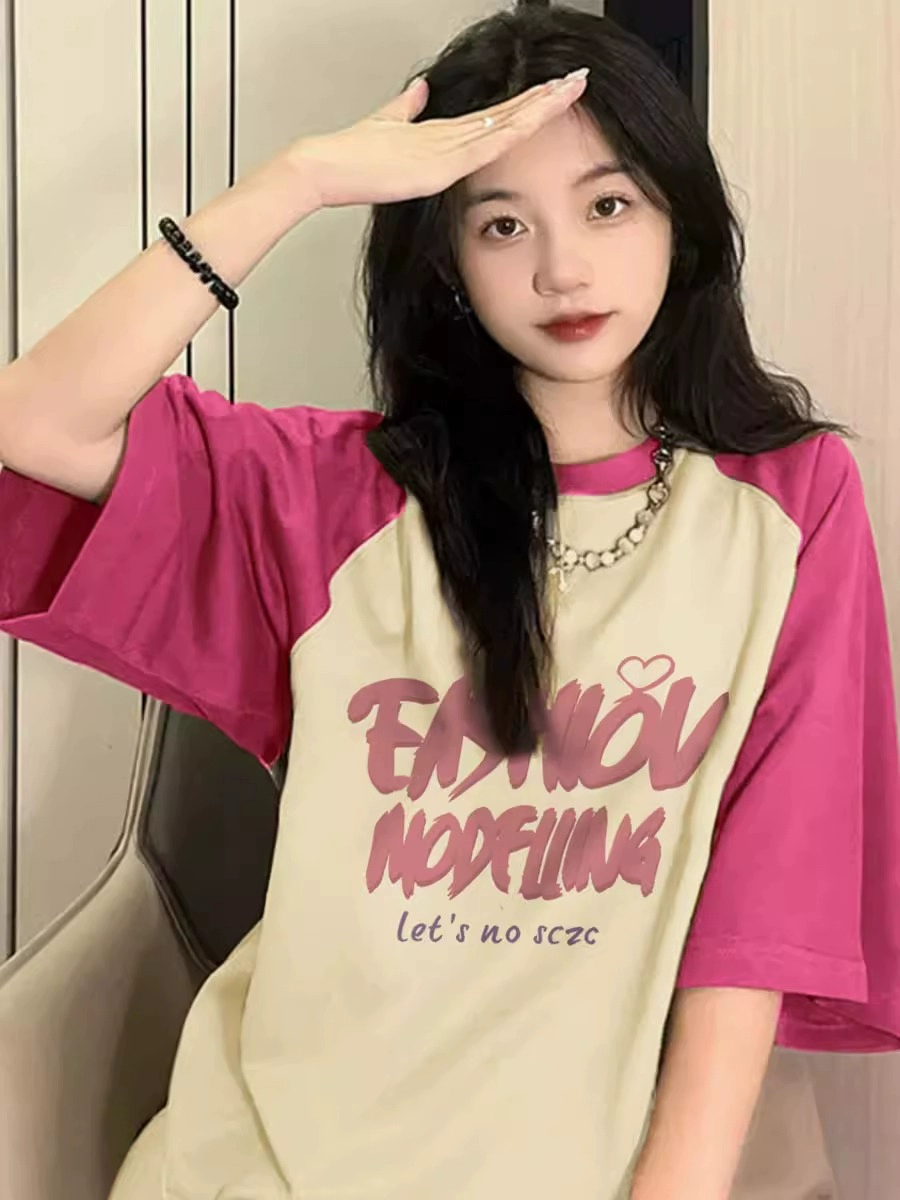 | nameOriginal | Dopamine wears rose red raglan sleeve short-sleeved T-shirt for women 2023 new summer sweet age-reducing right shoulder top |