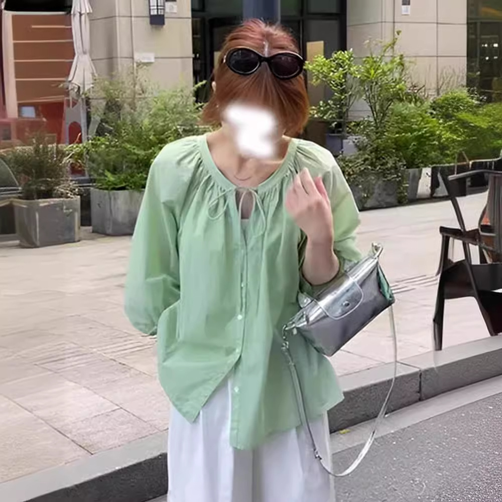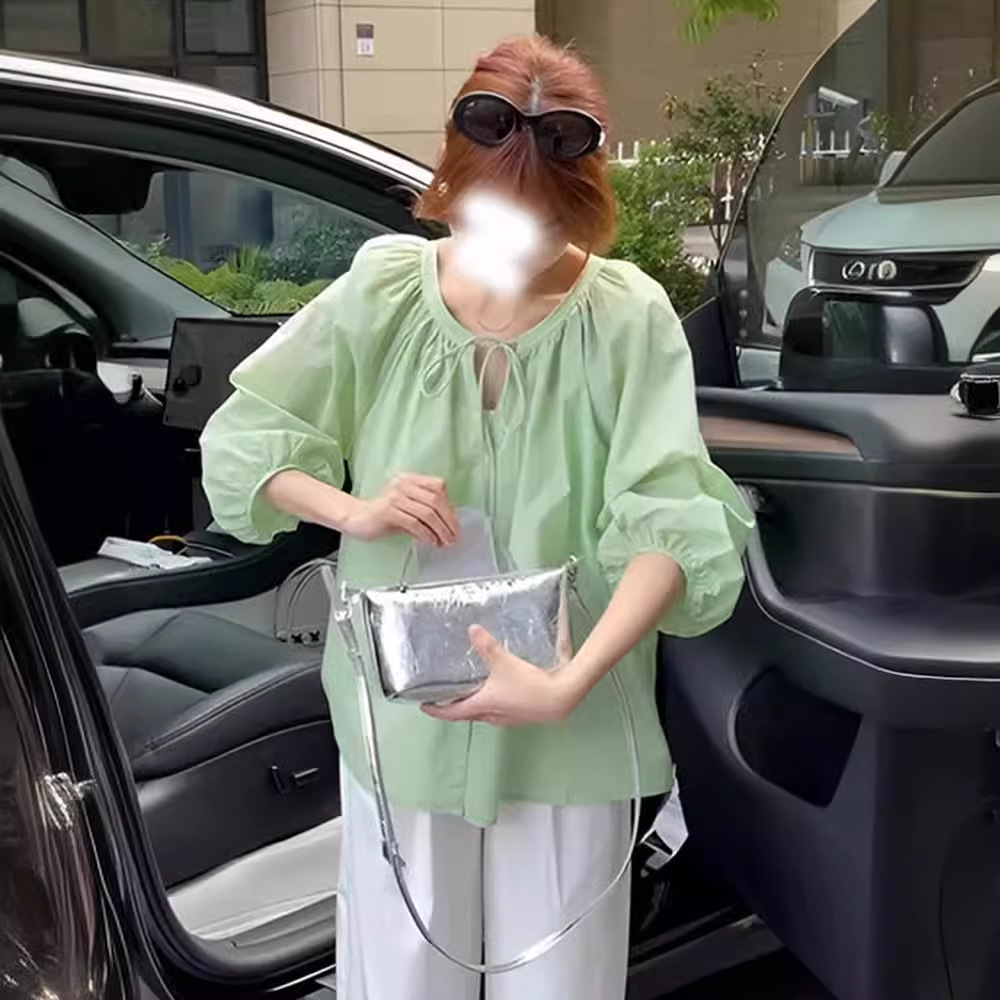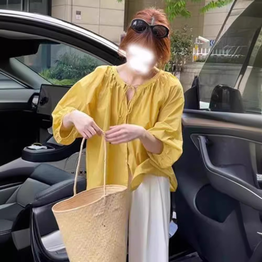 | nameOriginal | Dopamine Yellow Lantern Sleeve Chiffon Shirt Women's Design Sense Niche Summer Loose Belly Covering Slimming Age-reducing Top |