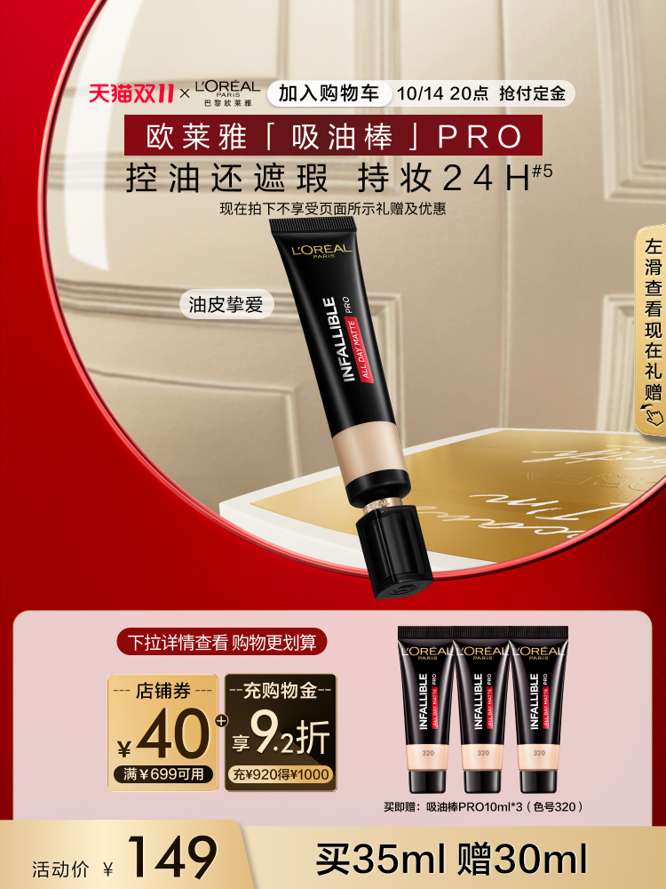 | nameOriginal | [Double 11 Early Access to Purchase] L'Oreal Oil Absorbing Stick PRO Liquid Foundation Concealer, Oil Control, Non-Removing Makeup Concealer for Women |
