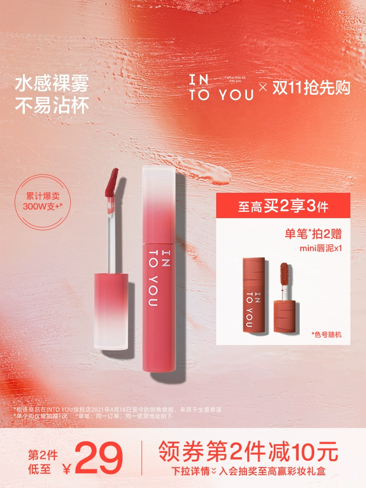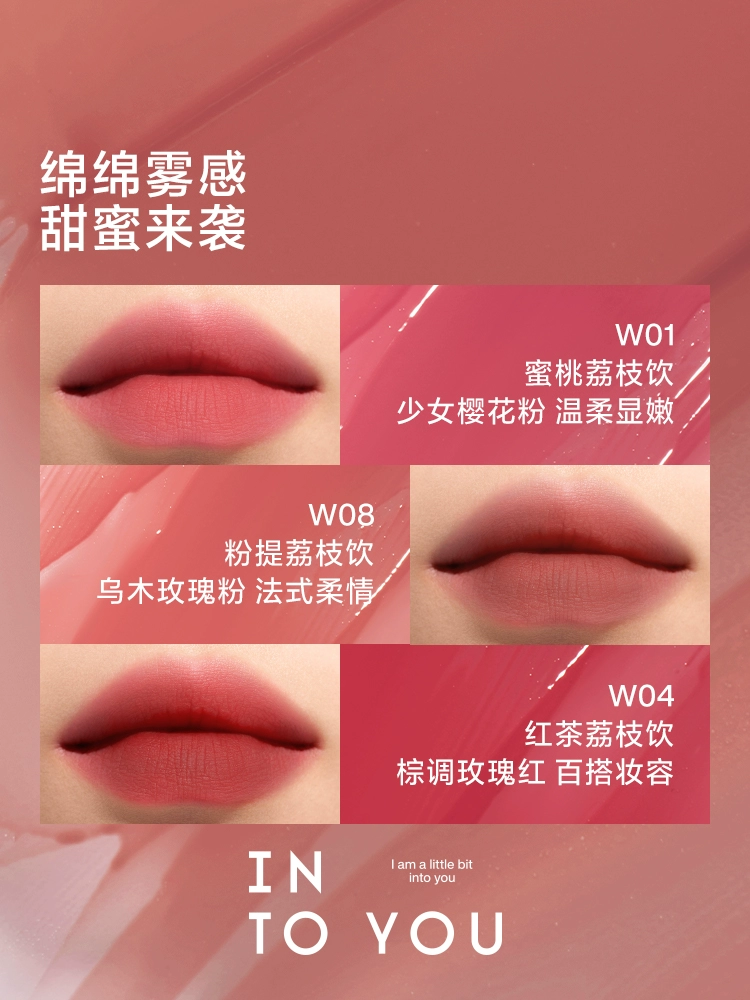 | nameOriginal | [Double 11 Early Purchase] INTO YOU water mist lip glaze lip gloss matte matte lipstick lip gloss is not easy to stick to the cup for women |