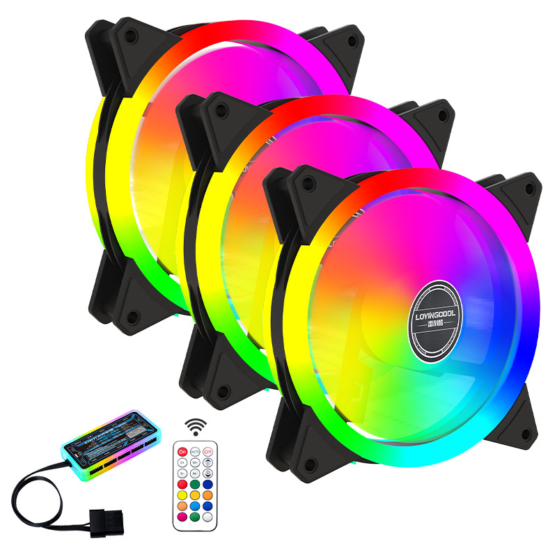 | nameOriginal | Double aperture computer case cooling fan 12V high speed large air volume mute LED Aurora 12cm luminous fan |