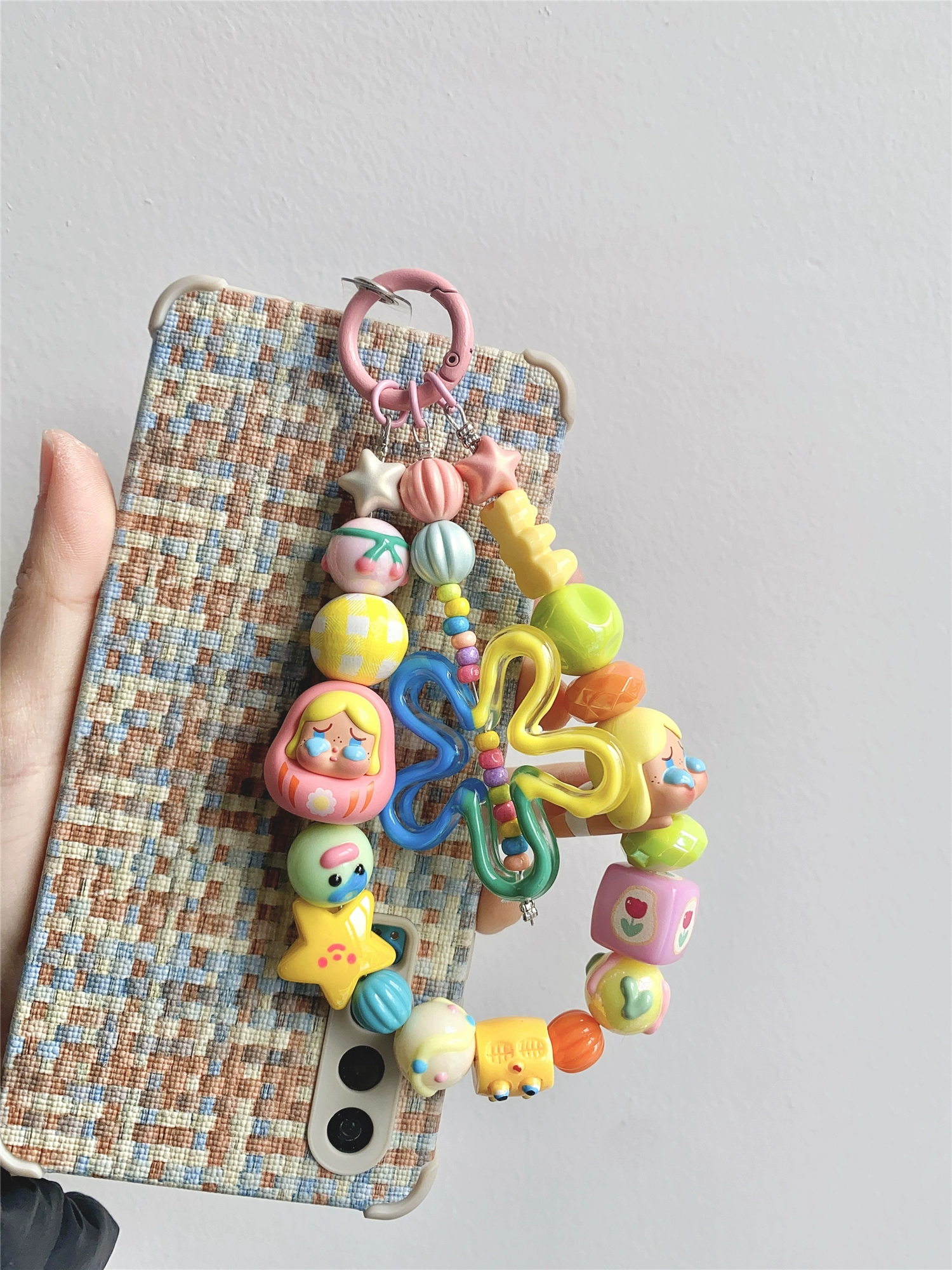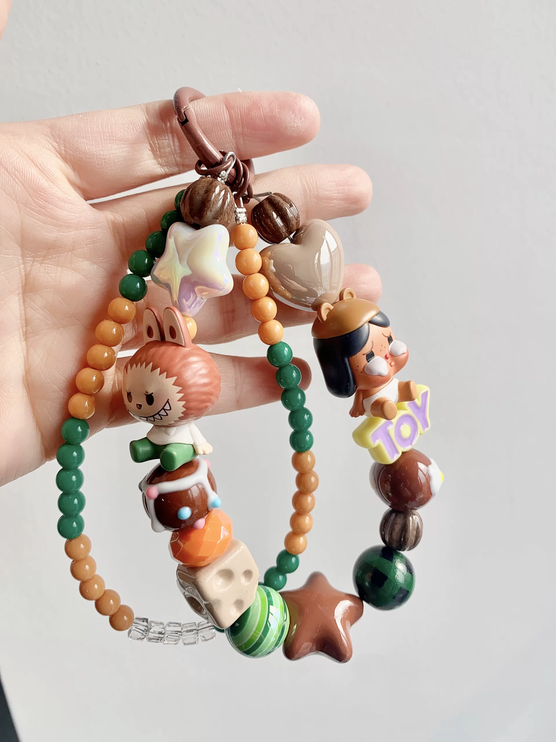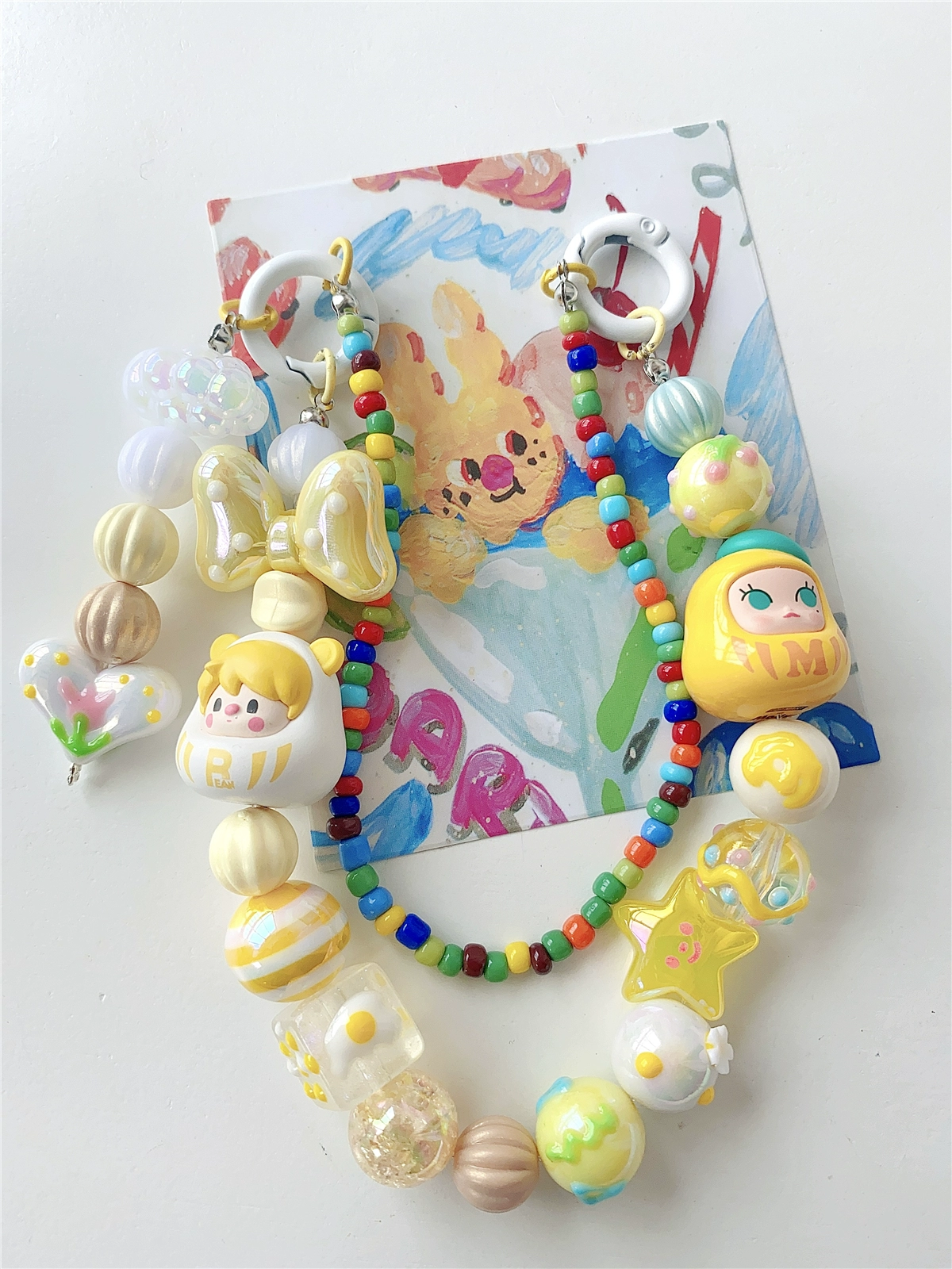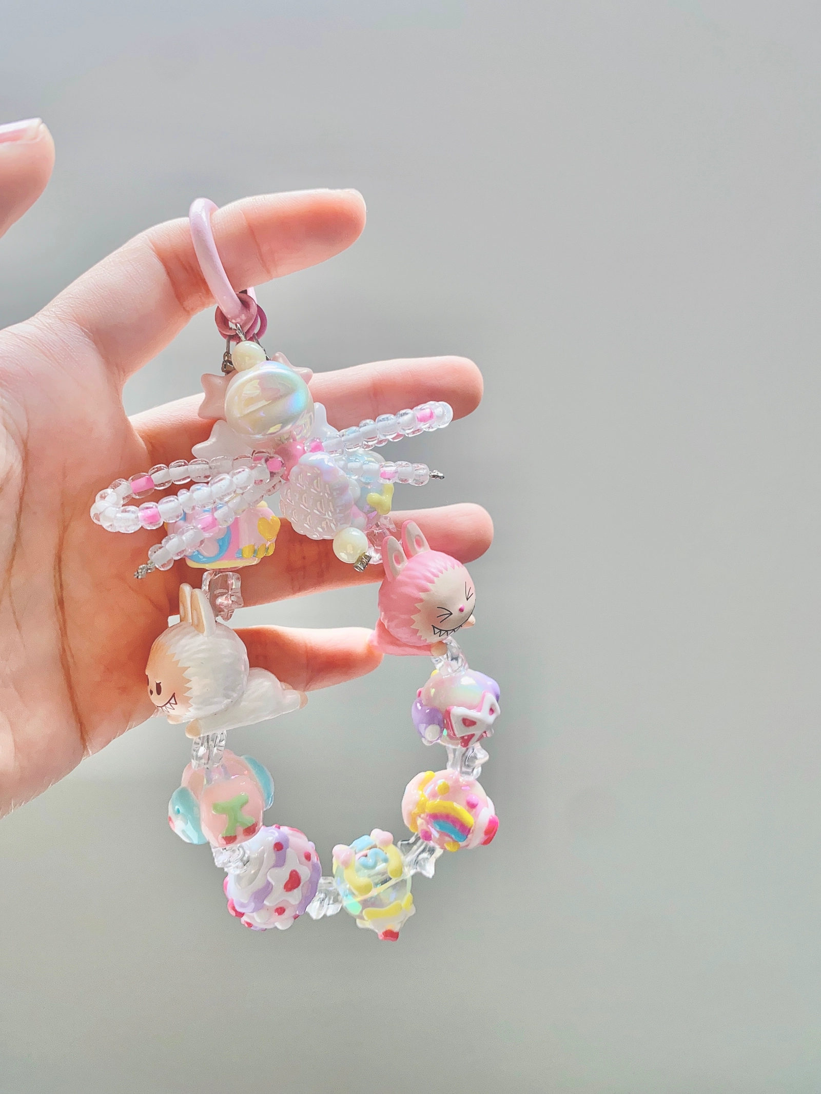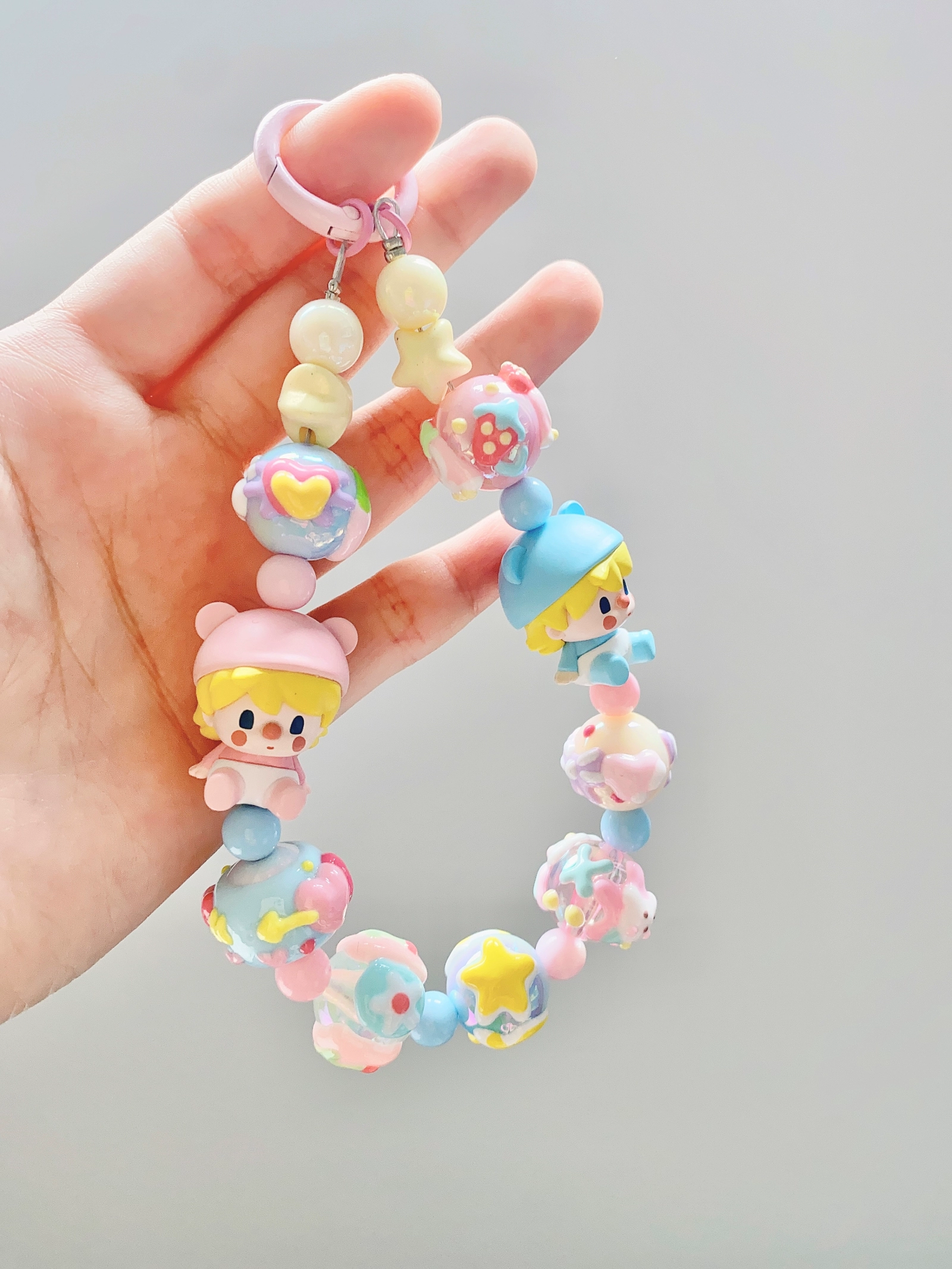 Double baby model, authentic Bubble Mart cute hand-painted beads mobile phone chain/key chain/bag pendant hanging finished product
