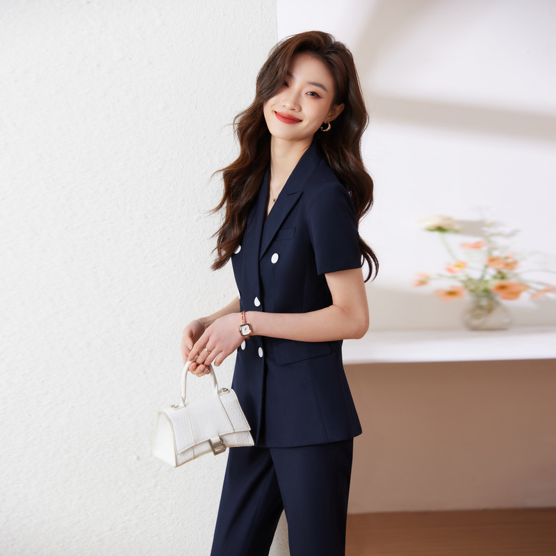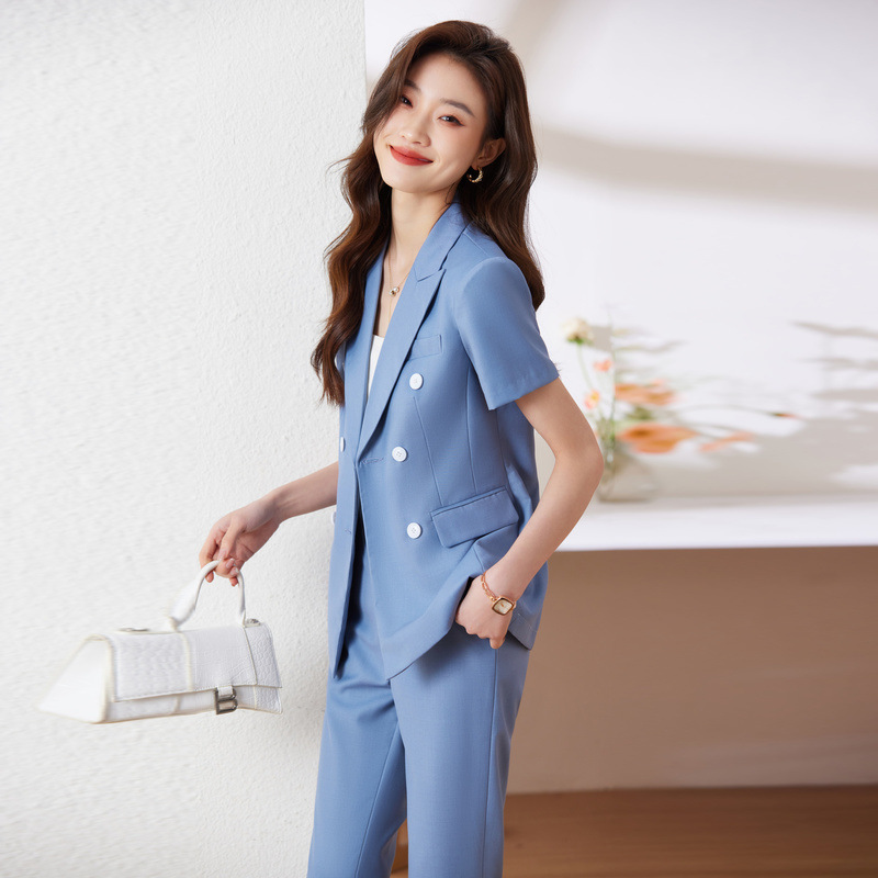 | nameOriginal | Double-breasted fried street suit suit women's spring and summer business wear 2024 new casual short-sleeved small suit thin pants |