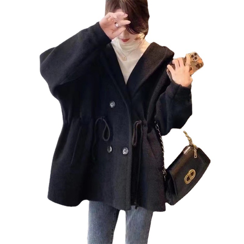 | nameOriginal | Double-breasted knitted cardigan 2023 Autumn New imitation double-sided coat women's Korean-style thick hooded woolen coat |