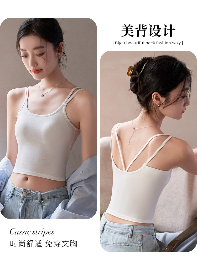 Double Camisole Women’s Inner Vest with Chest Pad Integrated U-shaped Beautiful Back Outer Wear Bottoming Backless Sleeveless Top bra
