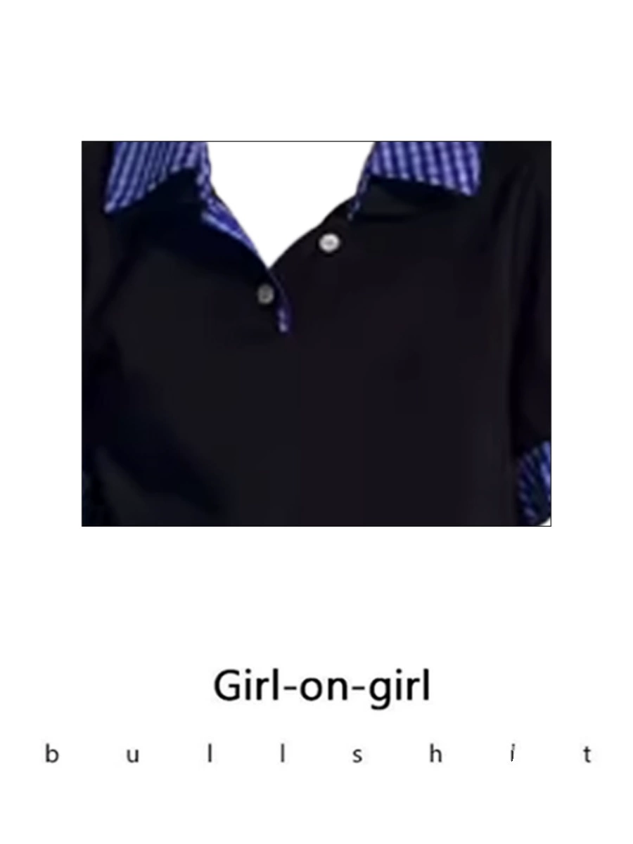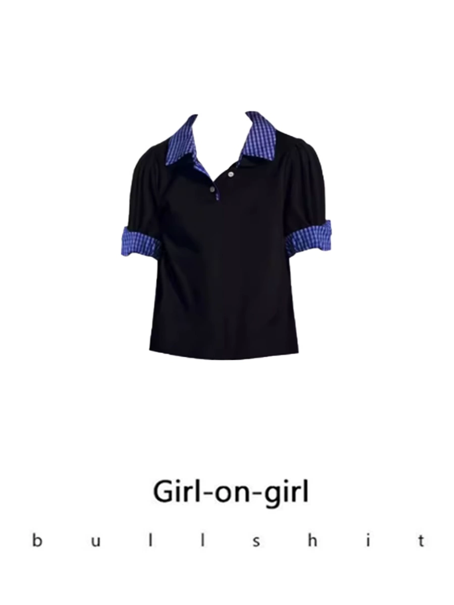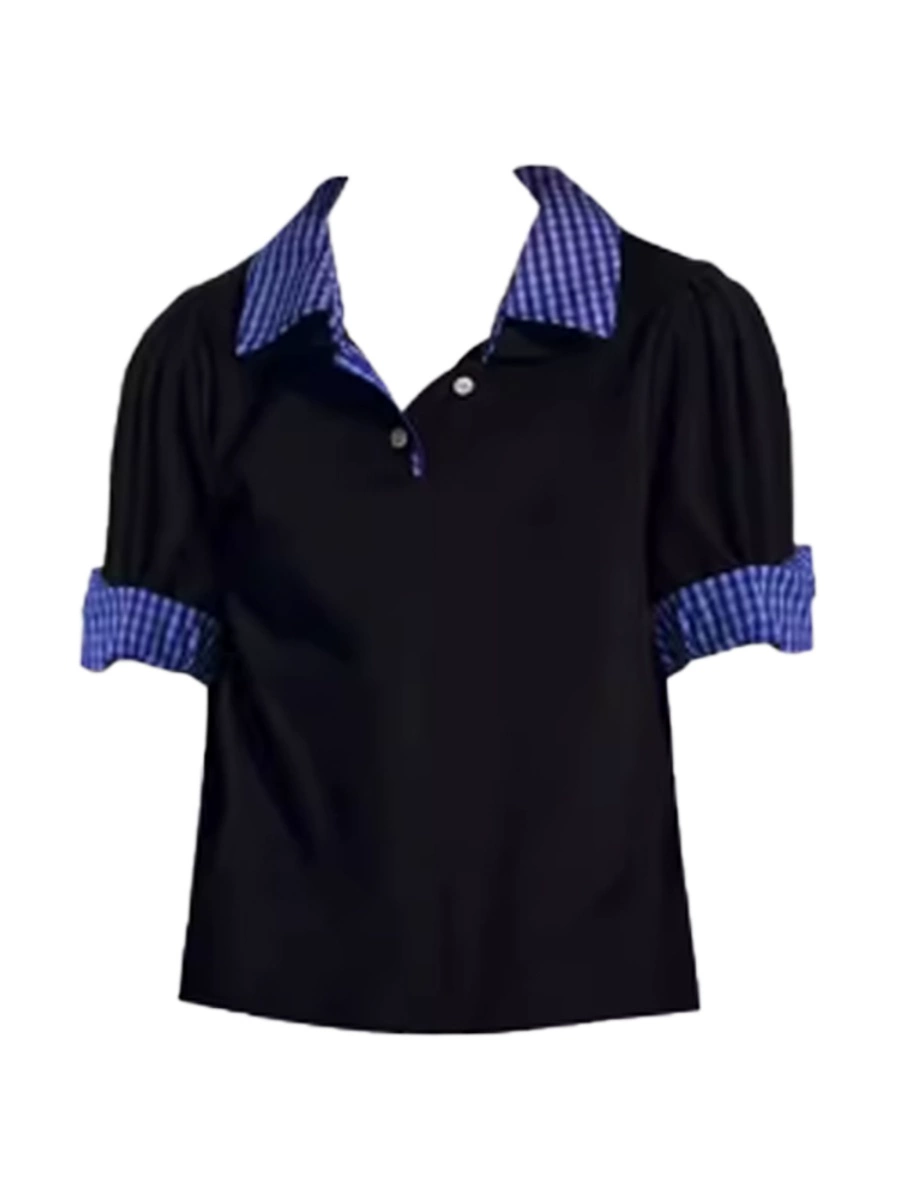 | nameOriginal | Double-collar plaid splicing fake two-piece contrasting color POLO shirt retro college commuting |