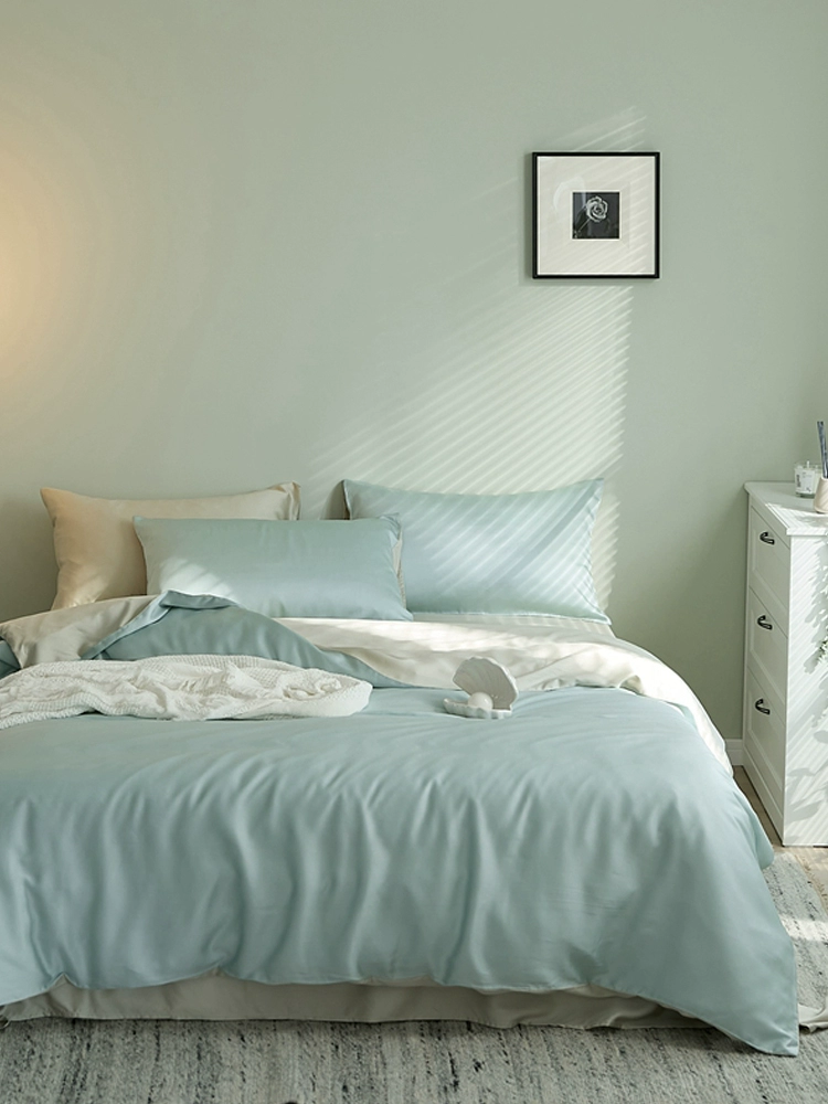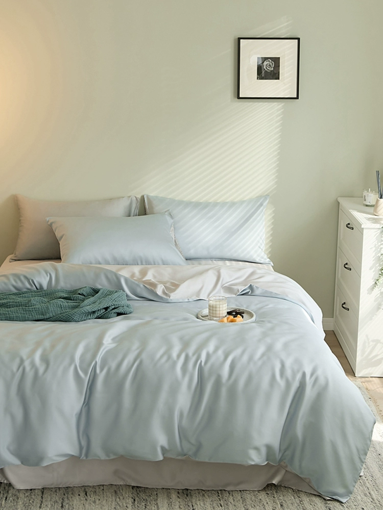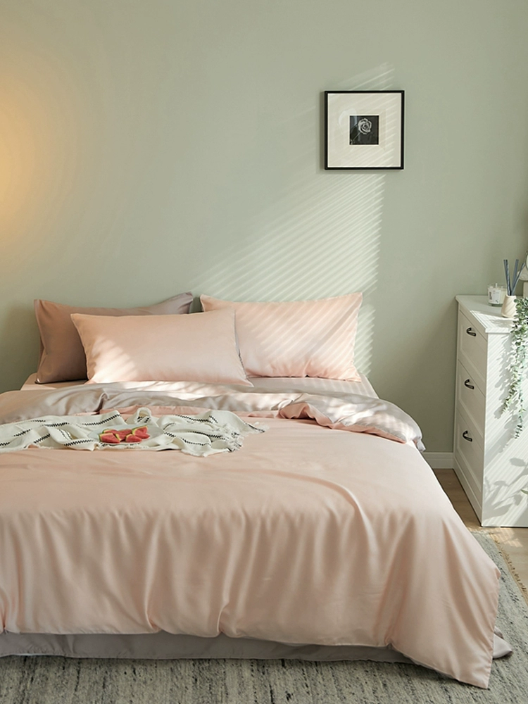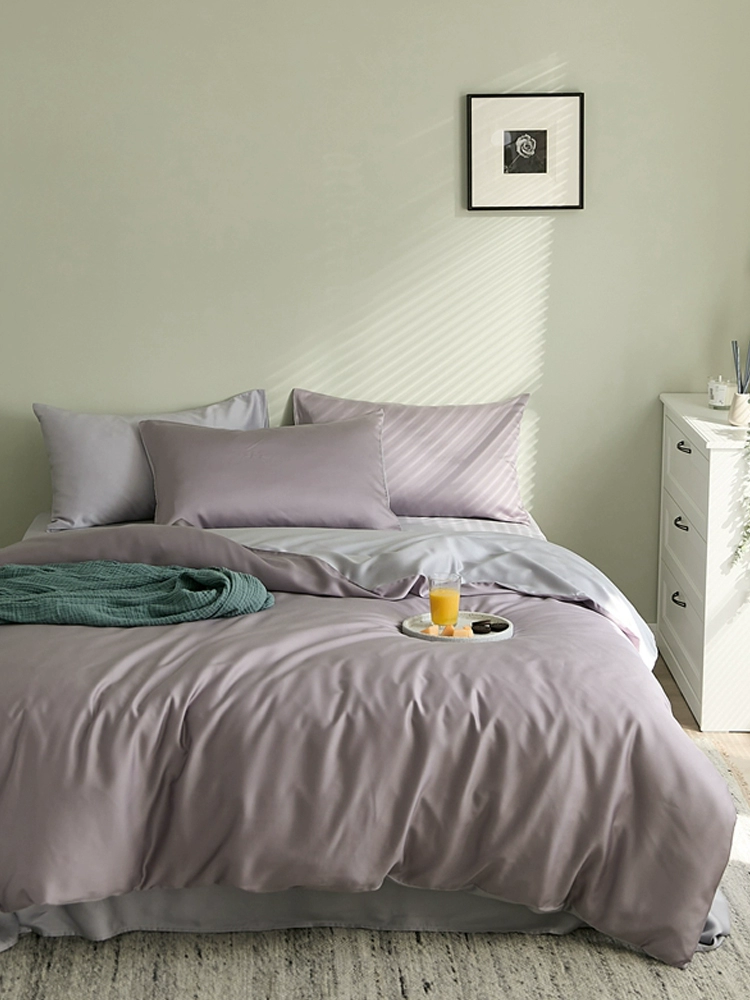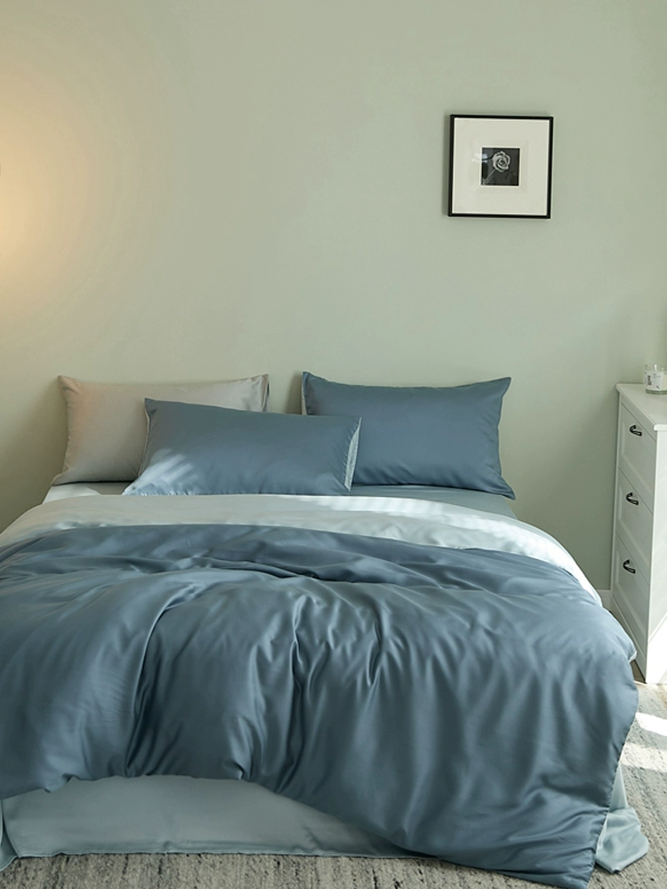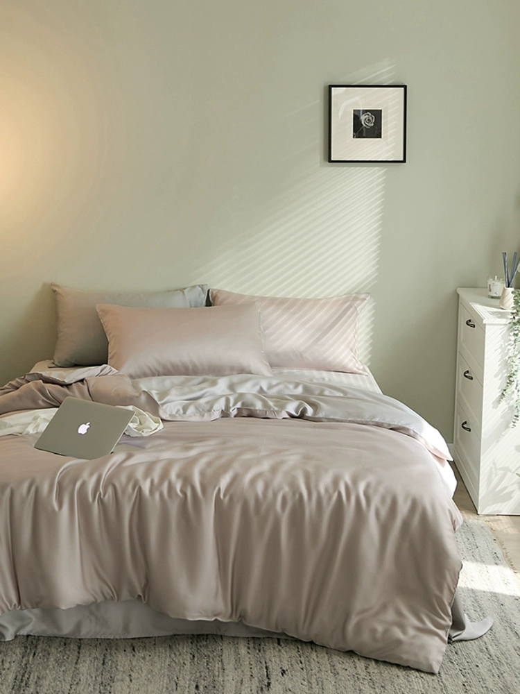 Double-color Tencel four-piece summer cool 60-count solid color sheets, fitted sheets, quilt covers, Lenzing silky bedding set