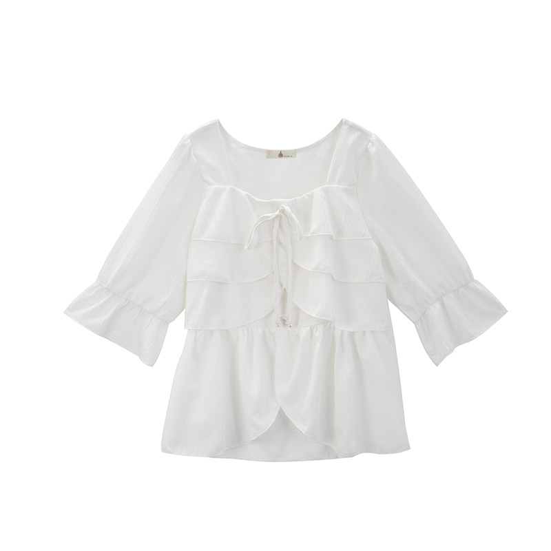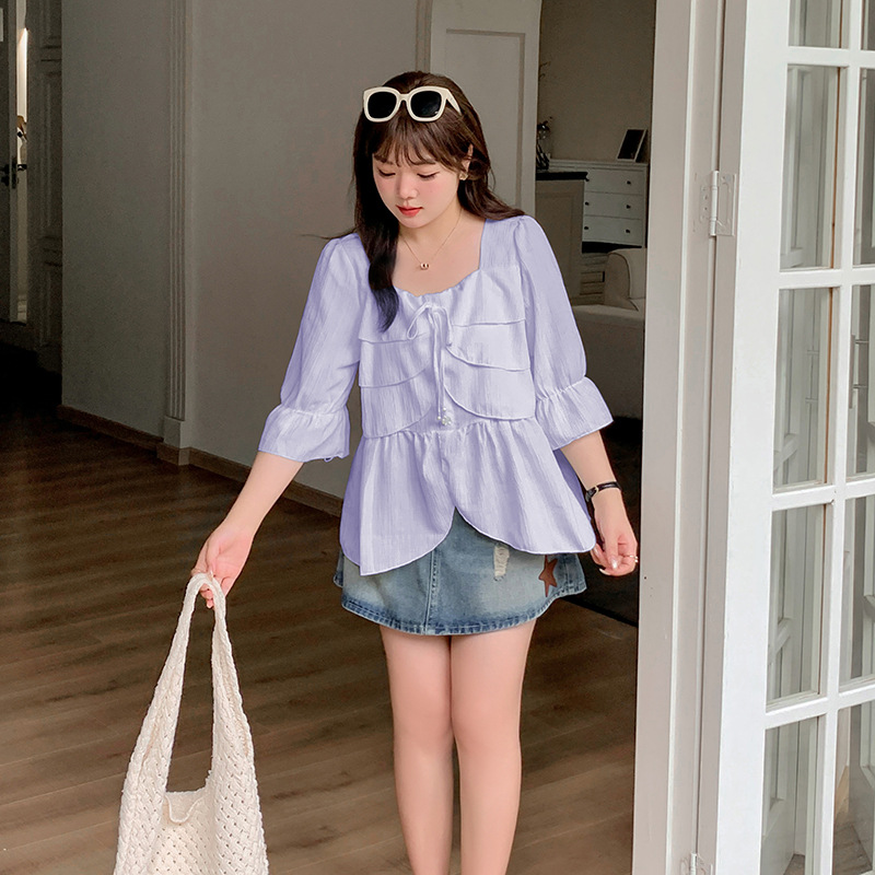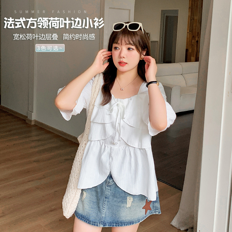 | nameOriginal | Double Day 2024 New Chiffon Top Women's Summer plus size Women's chubby girl French Square Collar Ruffled Small Shirt 8599 |