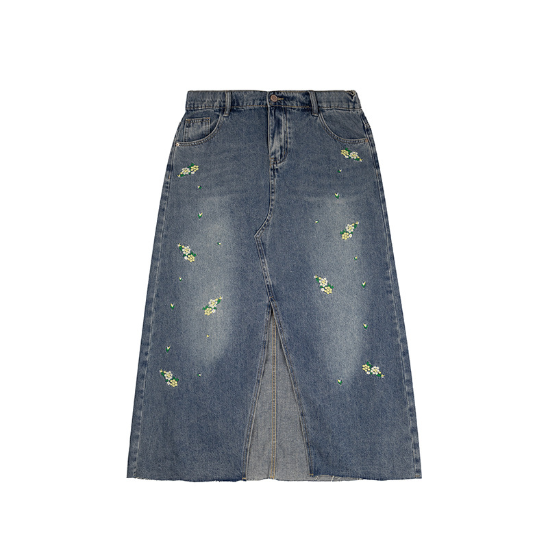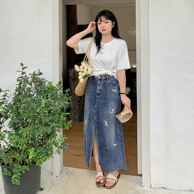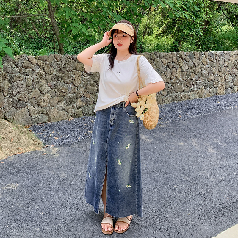 | nameOriginal | Double day 2024 new chubby girl plus size women's summer 200kg retro embroidered front split Denim overskirt ST1673 |