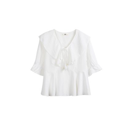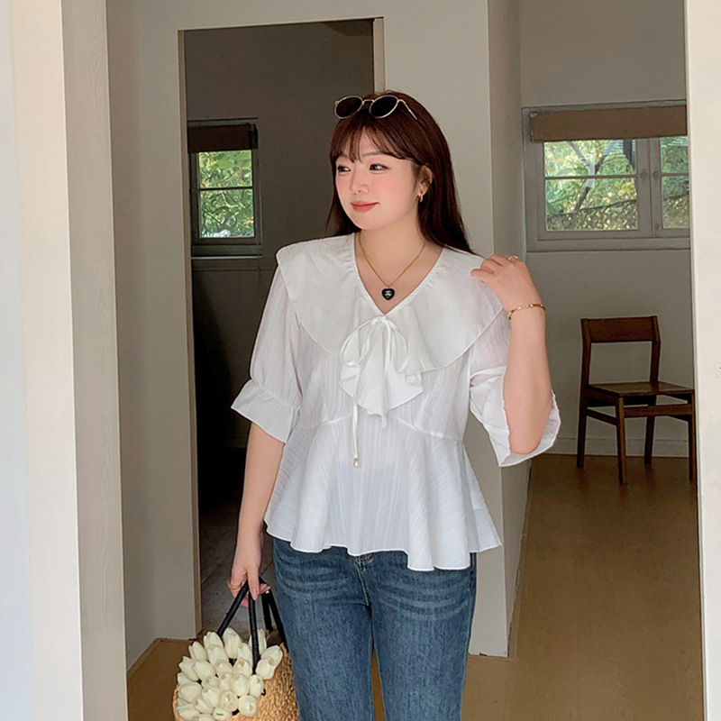 | nameOriginal | Double Day 2024 New Shirt Women's Spring and Summer Large Size Women's Clothing Chubby Sister French Lace-up Top L178 |
