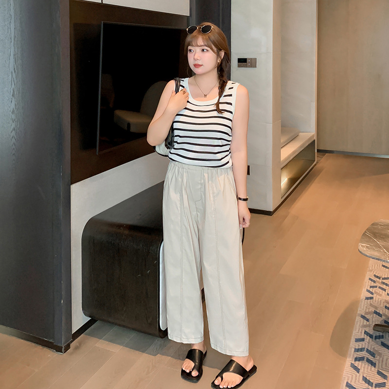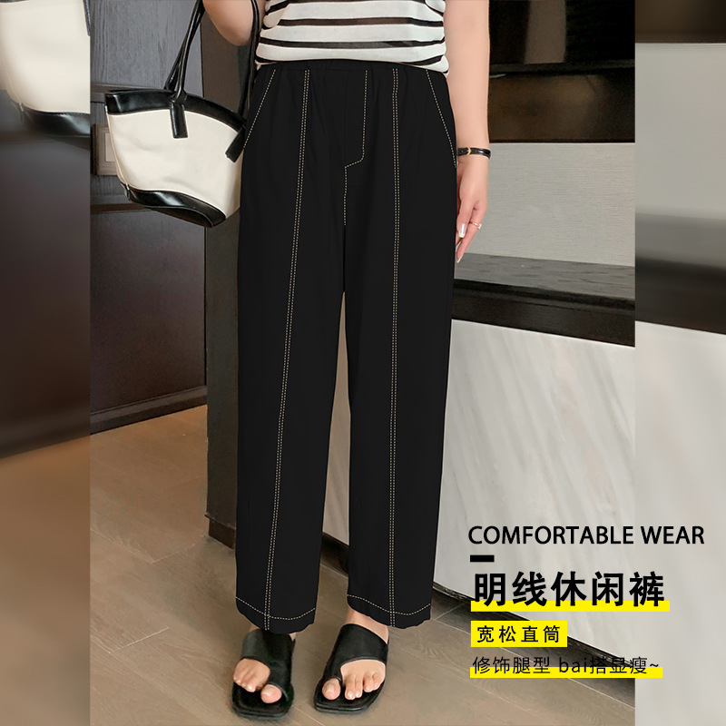 | nameOriginal | Double Day 2024 Summer New chubby girl plus size Women's Fashion Contrast Color Bright Line Casual Pants 8618 |