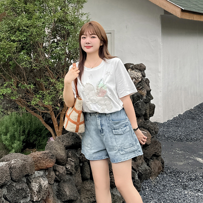 | nameOriginal | Double Day 2024 Summer New Fat Sister plus size Women's Wear Design Sense Hot Girl Multi-Pocket Denim Shorts ST1660 |
