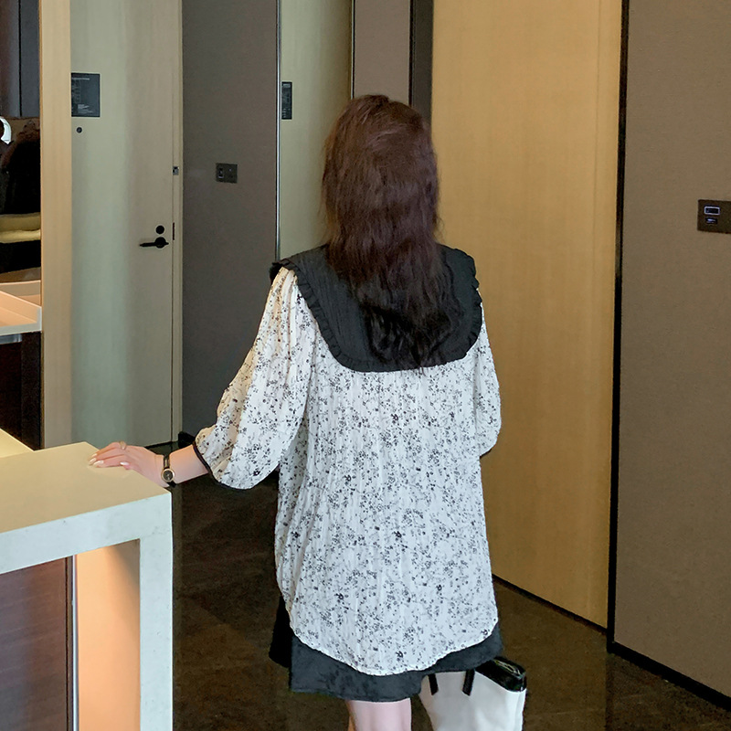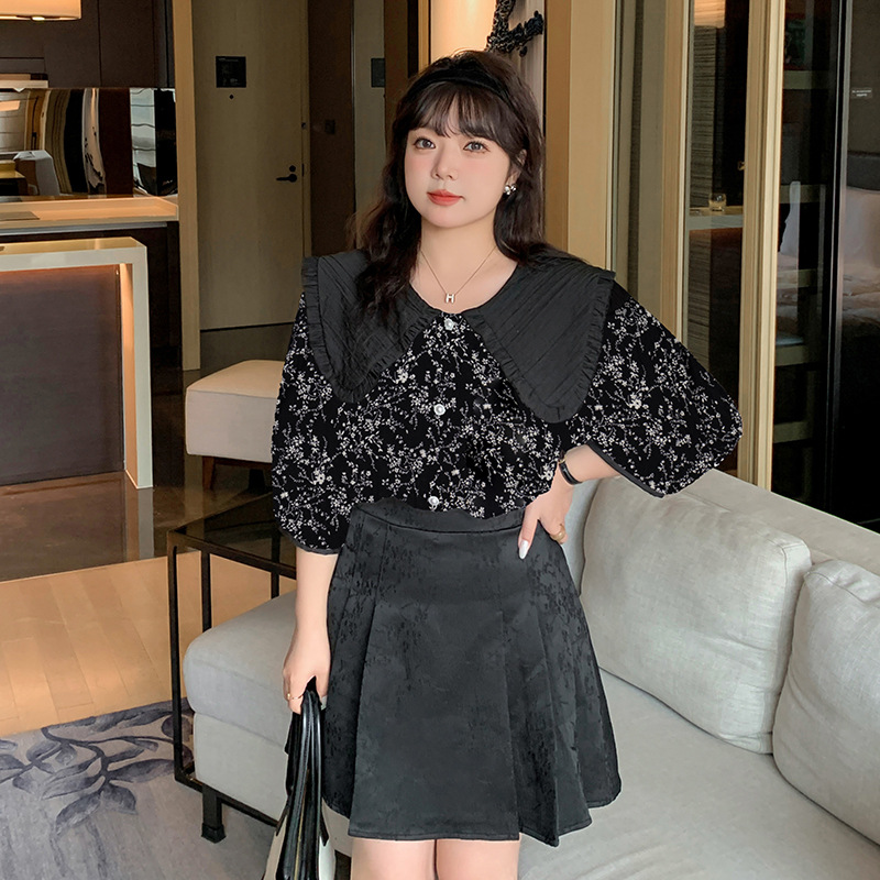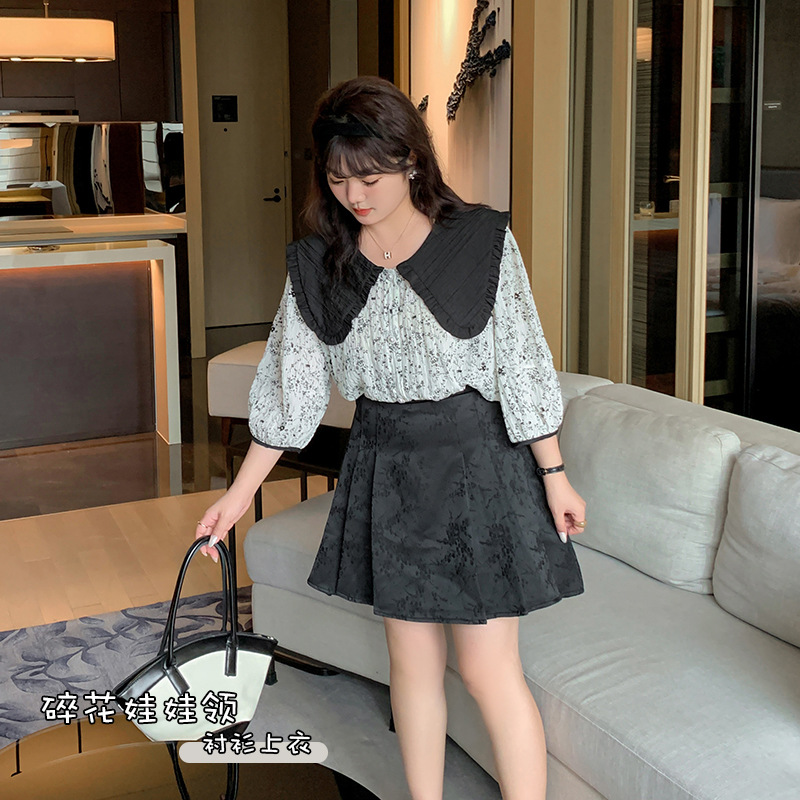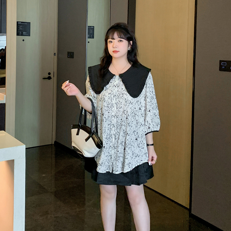 | nameOriginal | Double Day 2024 Summer New Korean Style plus size Women's Clothing Comfortable Casual Floral Doll Collar Shirt Top 8655 |