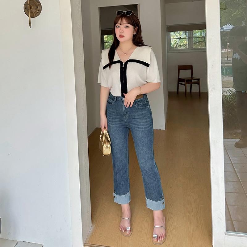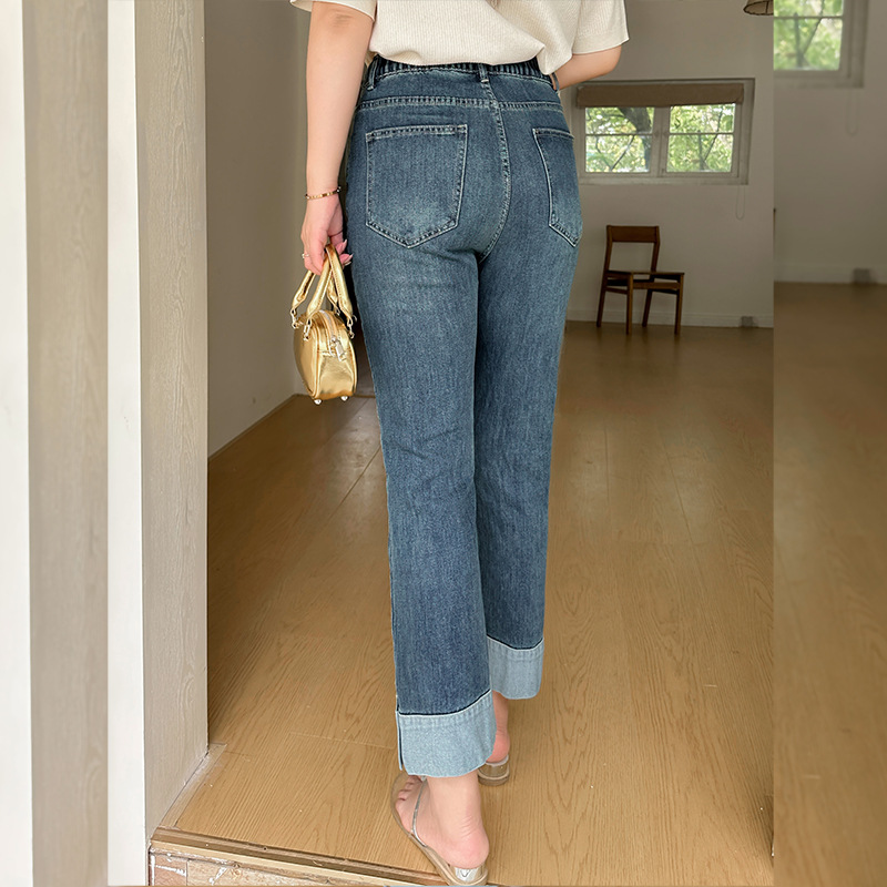 | nameOriginal | Double days 2024 spring new style fat sister plus size women's retro flanging straight jeans ST1501 |