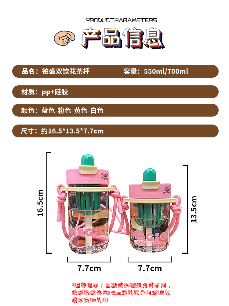 | nameOriginal | Double Drink Flower Tea Cup Girls High Color Value Plastic Suction Cup with Tea Compartment 2024 New Scale Children's Water Cup Summer |
