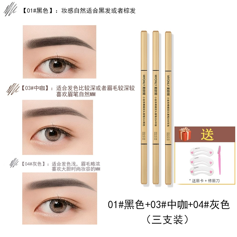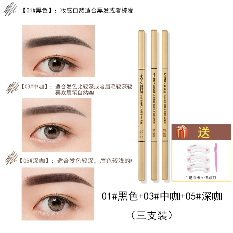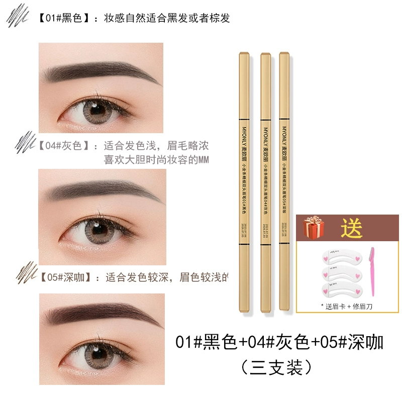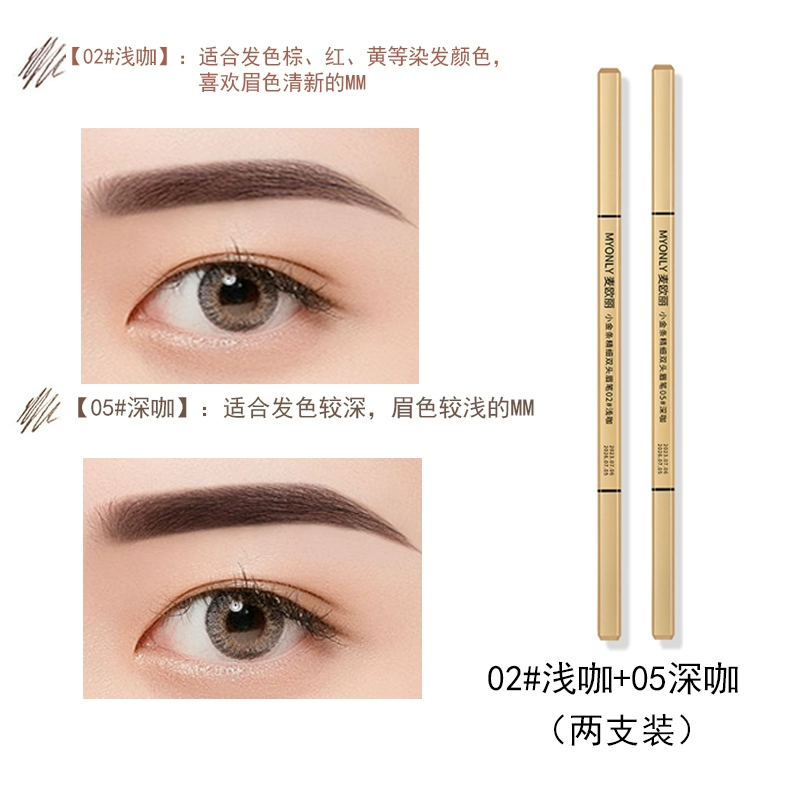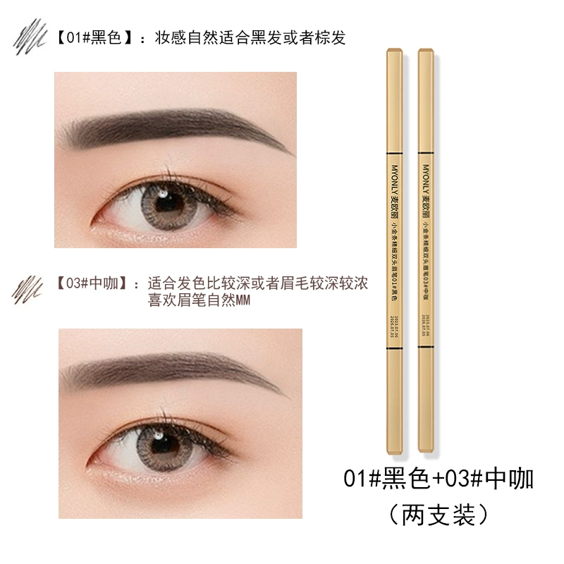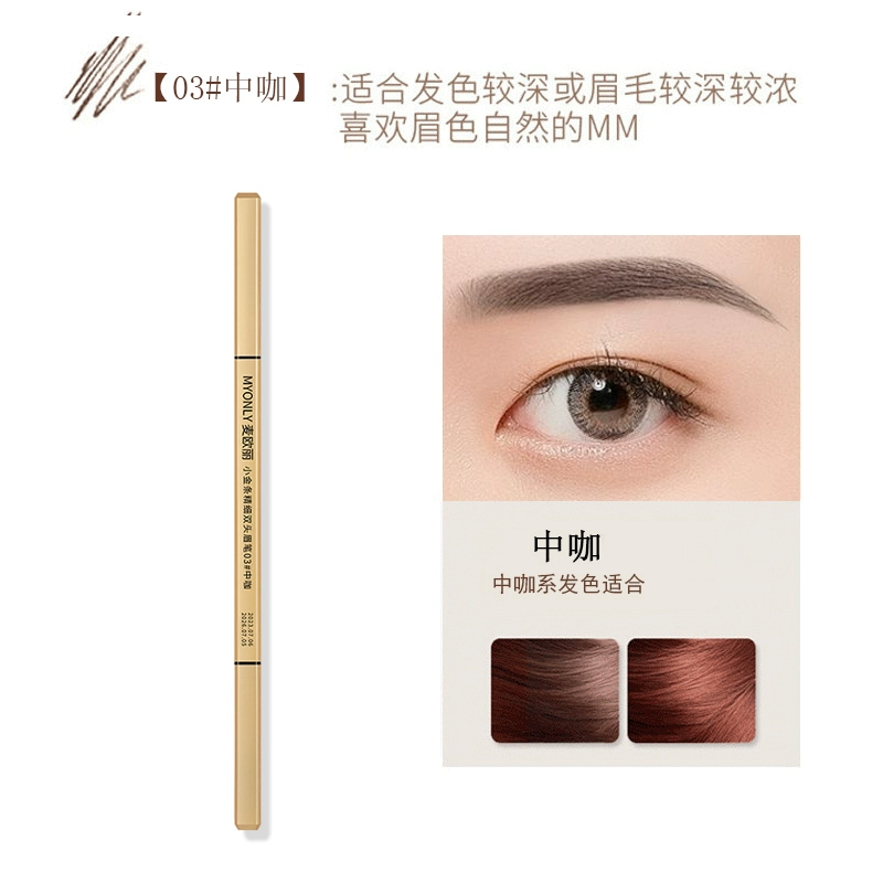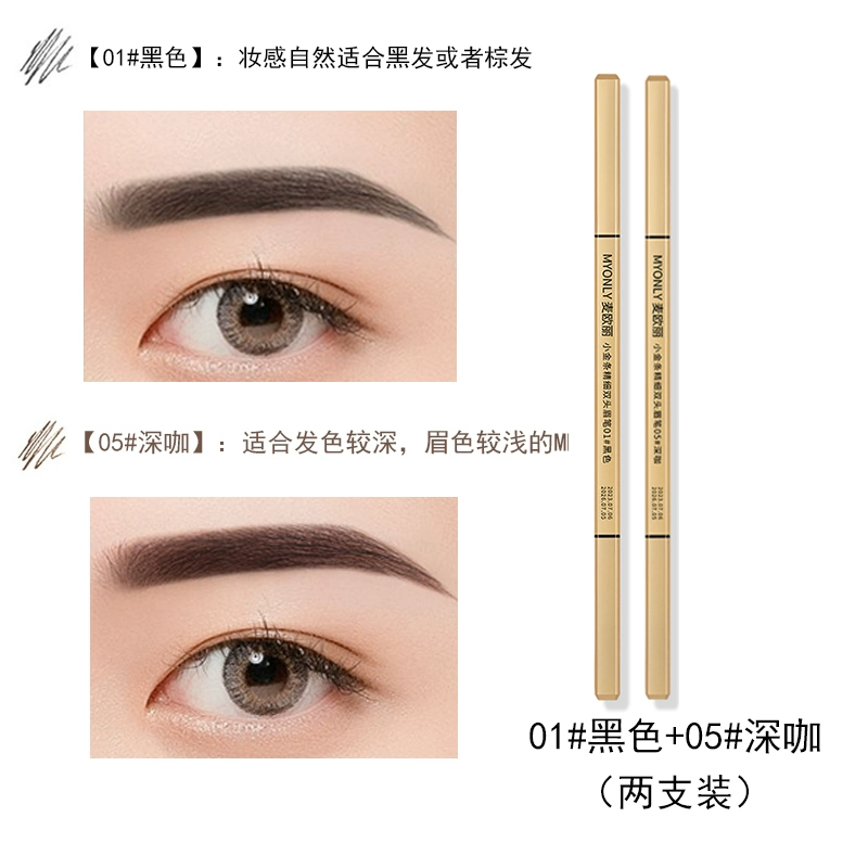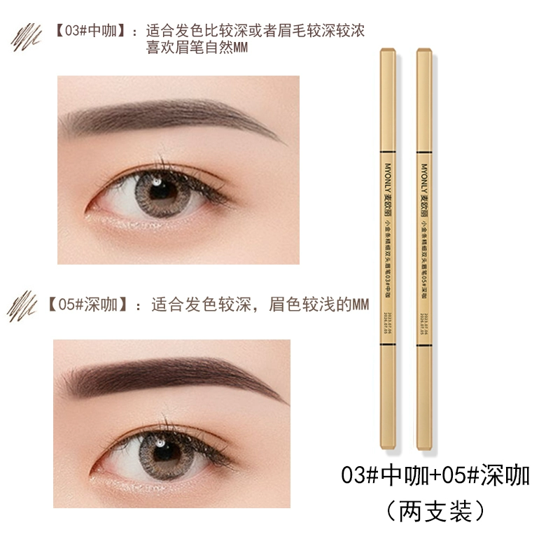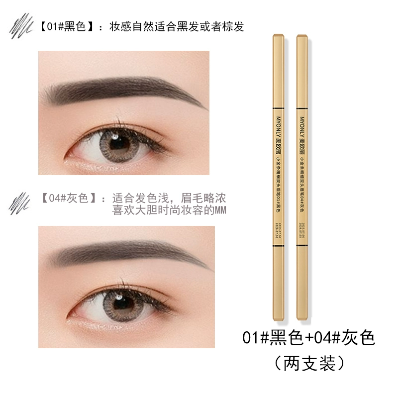 Double-ended eyebrow pencil, non-fading, clear roots, small gold bars