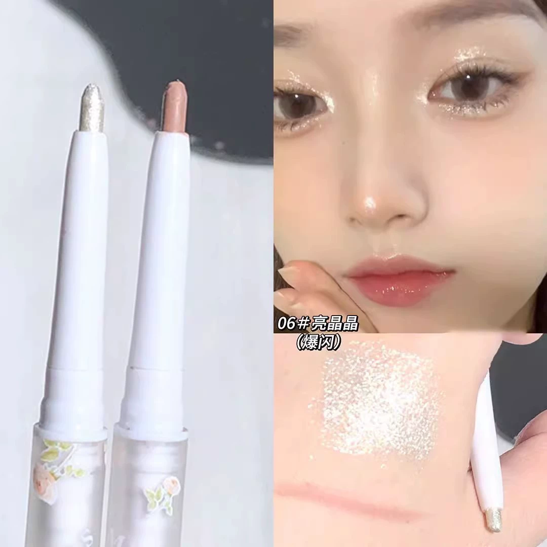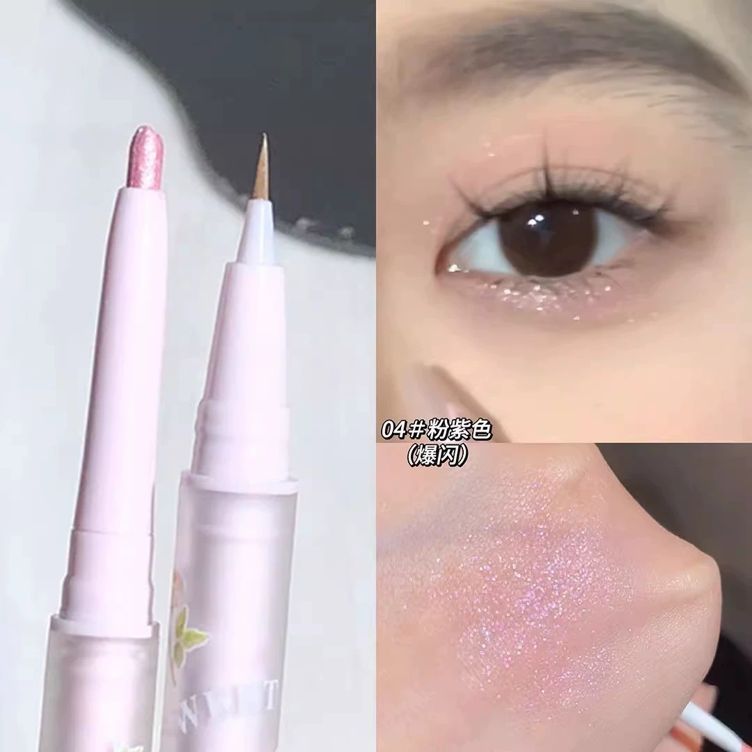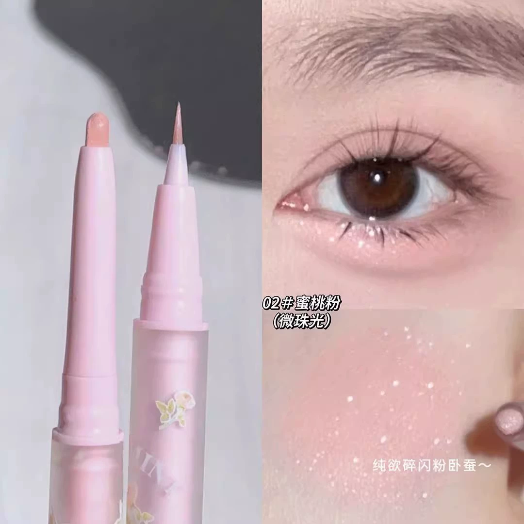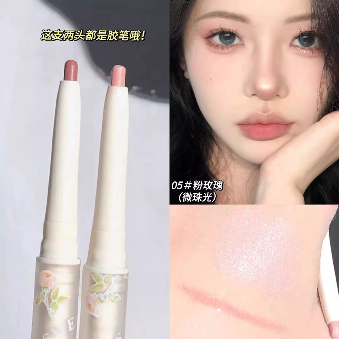Double-ended high-gloss pink brightening dual-purpose silkworm pen