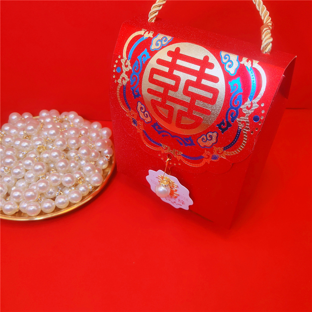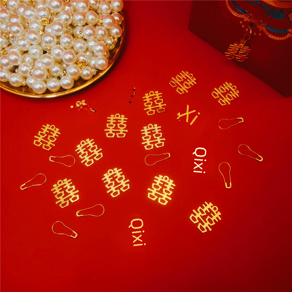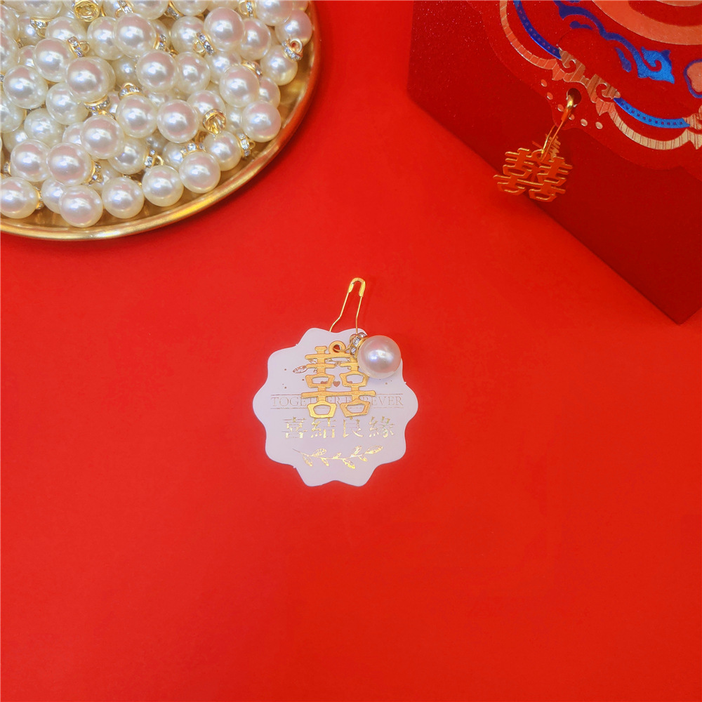Double Happy Character Pendant Wedding Accompanying Gift Candy Hanging Decorative Card Pendant DIY Metal Accessories Pin Pearl Decoration