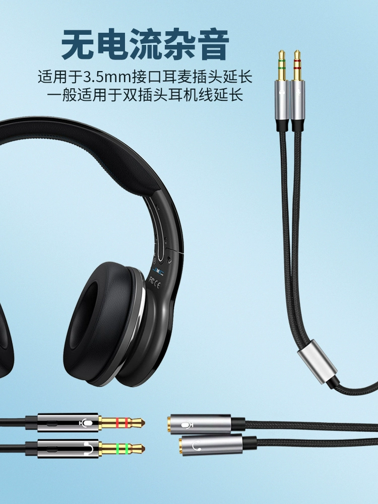 | nameOriginal | Double-headed 3.5mm headset computer headset AUX audio cable 3.5 female hole one-to-two extension cable headphone microphone audio three-section 3-level microphone splitter game headset lengthened 2 meters 3 meters |