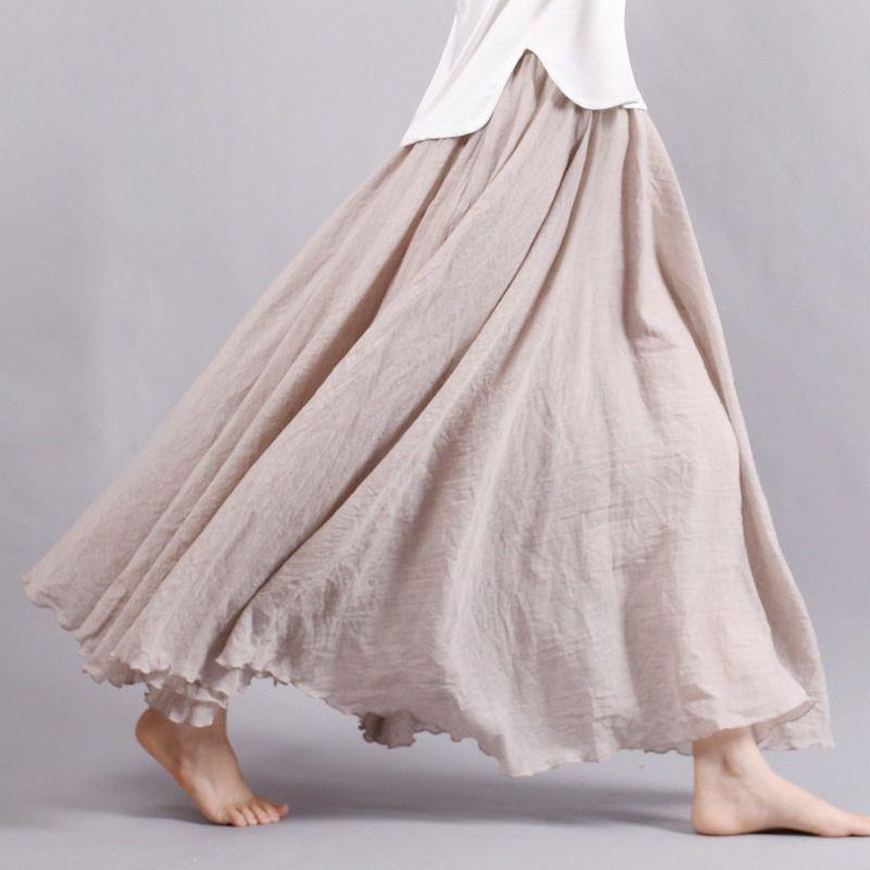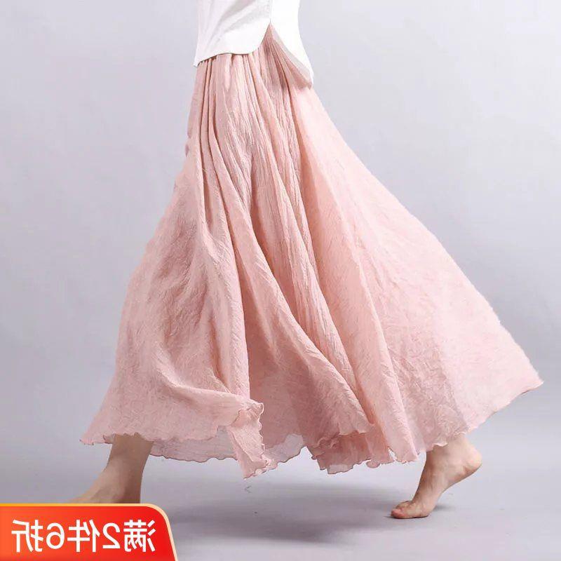 | nameOriginal | Double-layer anti-transparent cotton and linen skirt Mori elegant Zen style women's linen skirt plus size Hanfu large swing dress |
