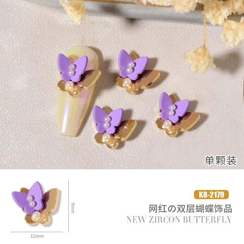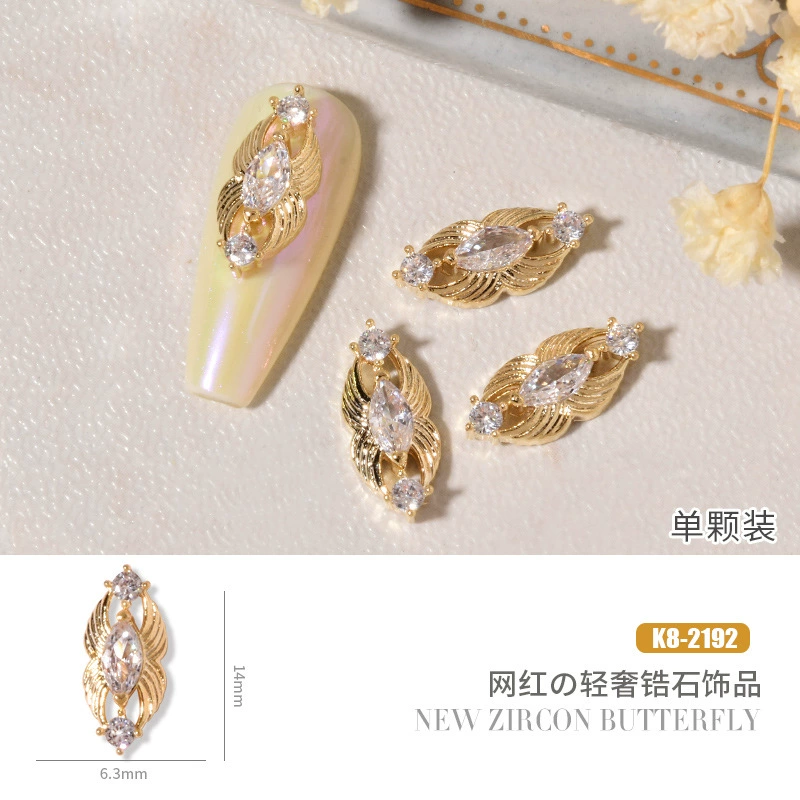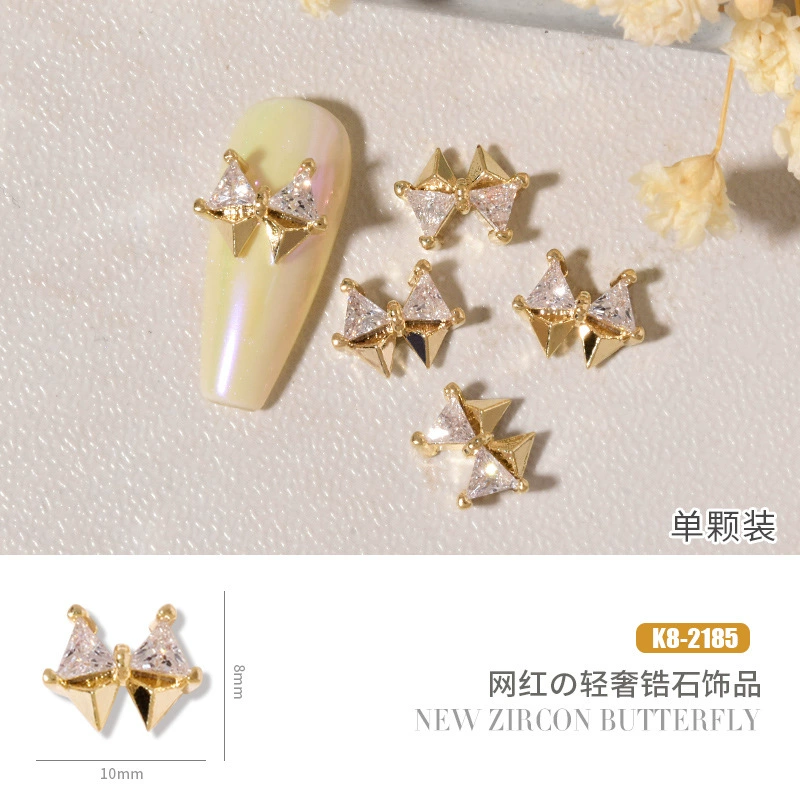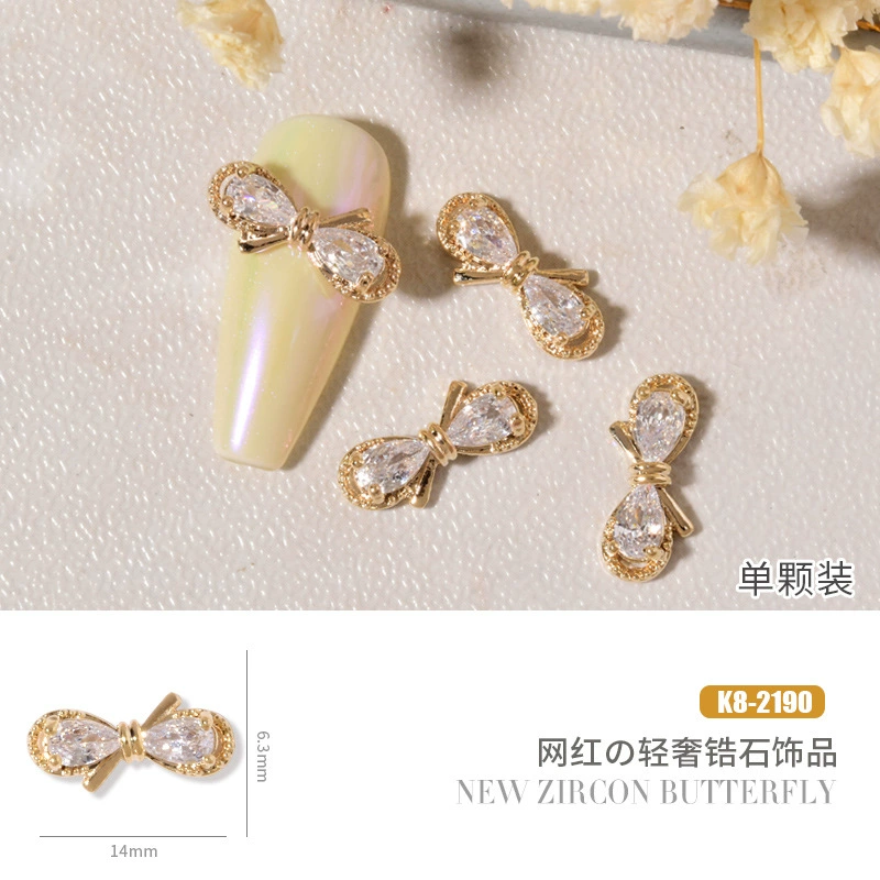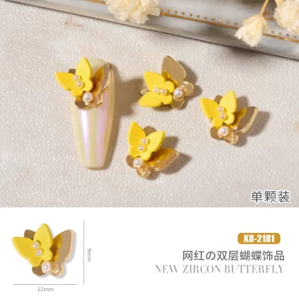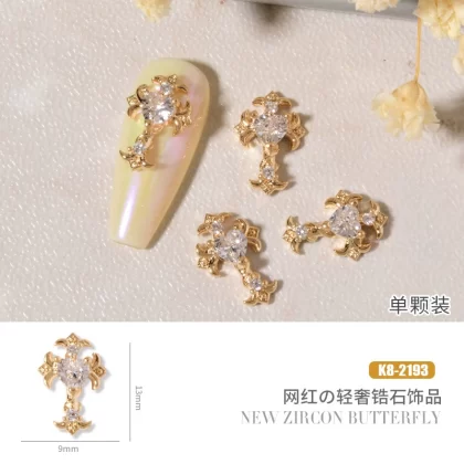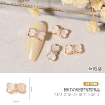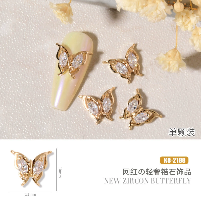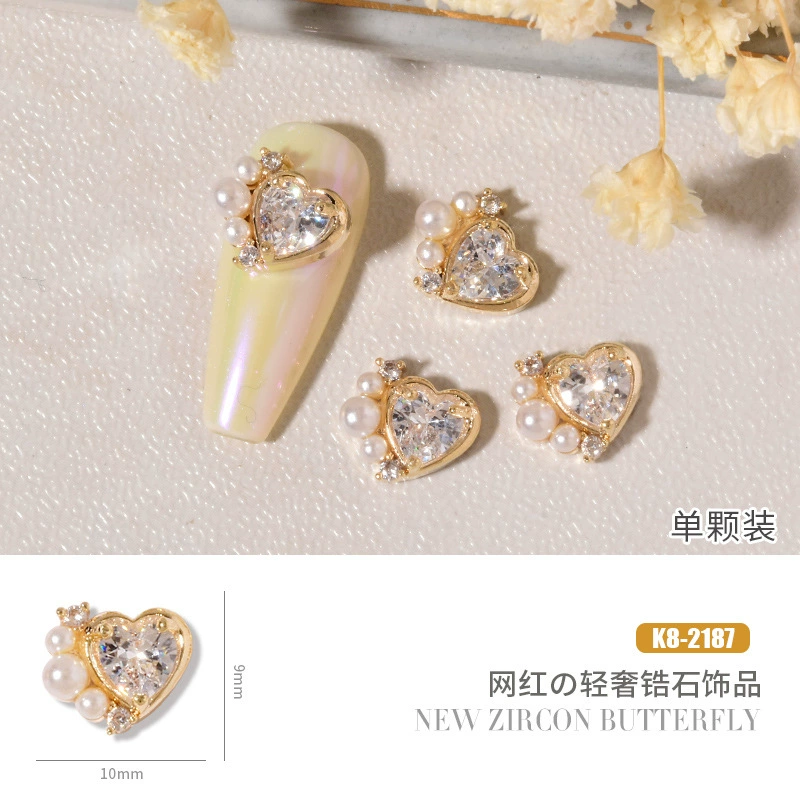 Double layer butterfly zircon heart chain nail art jewelry